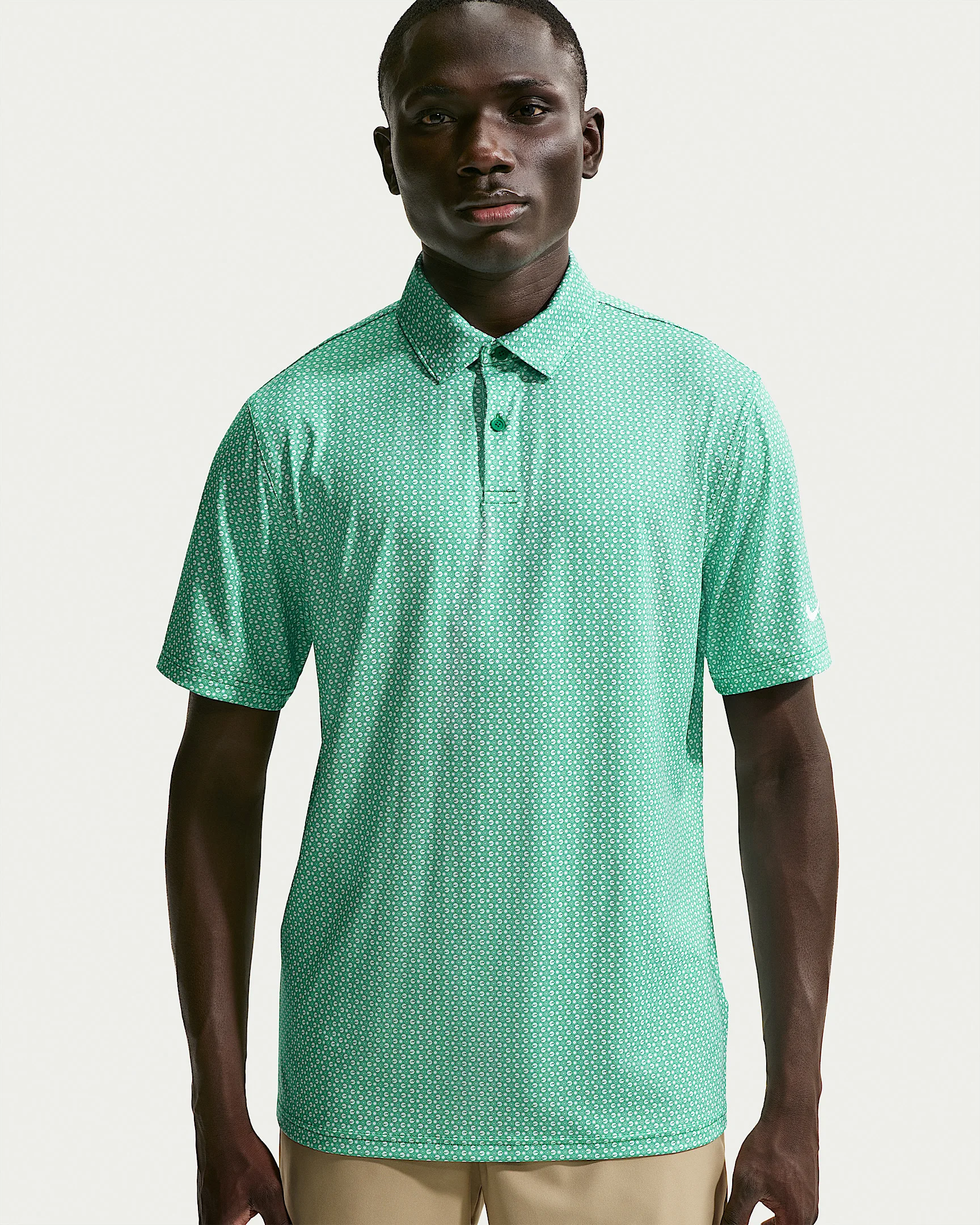 Lightweight and breathable, this sweat-wicking polo helps keep you dry on and off the course. Some stretch in the fabric allows you to move with ease through your biggest rounds of the year. Benefits - Smooth four-way stretchy fabric allows you to move through your swing without restriction. - Fabric has a subtle sheen and drape for a polished look on and off the course. - Nike Dri-FIT technology moves sweat away from your skin for quicker evaporation, helping you stay dry and comfortable. Product Details - 90% polyester/10% spandex - Four-way stretch knit fabric - Embroidered Swoosh logo - 2-button placket - Machine wash - Imported - Shown: Malachite/Malachite/White - Style: IO1276-365 SIZE & FIT Model is wearing size M and is 6′1″184cm Standard fit: easy and traditional