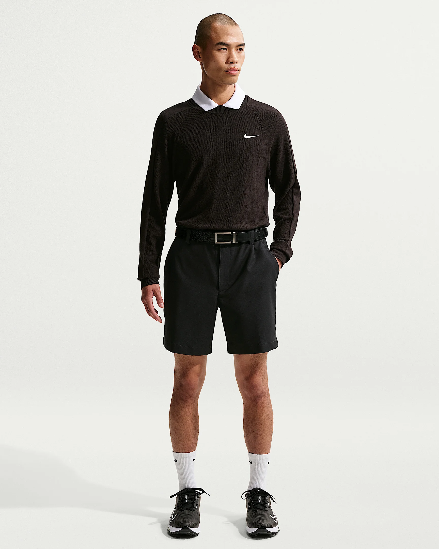 Cut to land above your knees, these lightweight shorts use a sweat-wicking, stretch fabric to help you stay cool and comfortable whether you're walking the course or riding. The stretch waistband is lined with gripper tape for a snug fit that helps keep tucked shirts stay put while deep pockets leave plenty of space for all the birdies you find out there. Benefits - Four-way stretch fabric allows you to move without restriction. - Nike Dri-FIT technology moves sweat away from your skin for quicker evaporation, helping you stay dry and comfortable. - Deep pockets are designed to hold yardage books, phones and keep tees and ball markers in place—even when you're riding. - Woven pocket lining helps prevent tees, ball markers and pencils from getting caught. Product Details - Above the knee length - Woven fabric - Mesh-lined elastic waistband - Fly zipper with button - Body: 100% polyester. Pockets: 80% polyester/20% cotton. - Machine wash - Imported - Shown: Black/Black/Black - Style: IB0685-010 SIZE & FIT Model is wearing size 32 and is 5′11″180cm Standard fit: easy and traditional