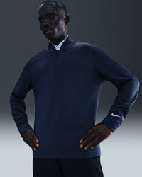 Cozy up to the pin in this 1/2-zip top. A go-to layer for cooler rounds, it uses a brushed Therma-FIT fabric to help you stay warm without weighing you down. Some stretch in the fabric allows you to make a full turn in your swing and move through the ball with ease. Benefits - Nike Therma-FIT technology helps manage your body’s natural heat to help keep you warm in cold-weather conditions. - Blade collar and 1/2-zip design make it easy to pair this top with your favorite polos. Product Details - 94% polyester/6% spandex - Brushed thermal knit fabric - 1/2-zip design - Embroidered Nike Golf shield logo - Machine wash - Imported - Shown: College Navy/White - Style: IB0307-419 SIZE & FIT Model is wearing size M and is 6′1″184cm Standard fit: easy and traditional