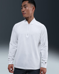 Cozy up to the pin in this 1/2-zip top. A go-to layer for cooler rounds, it uses a brushed Therma-FIT fabric to help you stay warm without weighing you down. Some stretch in the fabric allows you to make a full turn in your swing and move through the ball with ease. Benefits - Nike Therma-FIT technology helps manage your body’s natural heat to help keep you warm in cold-weather conditions. - Blade collar and 1/2-zip design make it easy to pair this top with your favorite polos. Product Details - 94% polyester/6% spandex - Brushed thermal knit fabric - 1/2-zip design - Embroidered Nike Golf shield logo - Machine wash - Imported - Shown: White/Black - Style: IB0307-100 SIZE & FIT Model is wearing size M and is 6′0″182cm Standard fit: easy and traditional