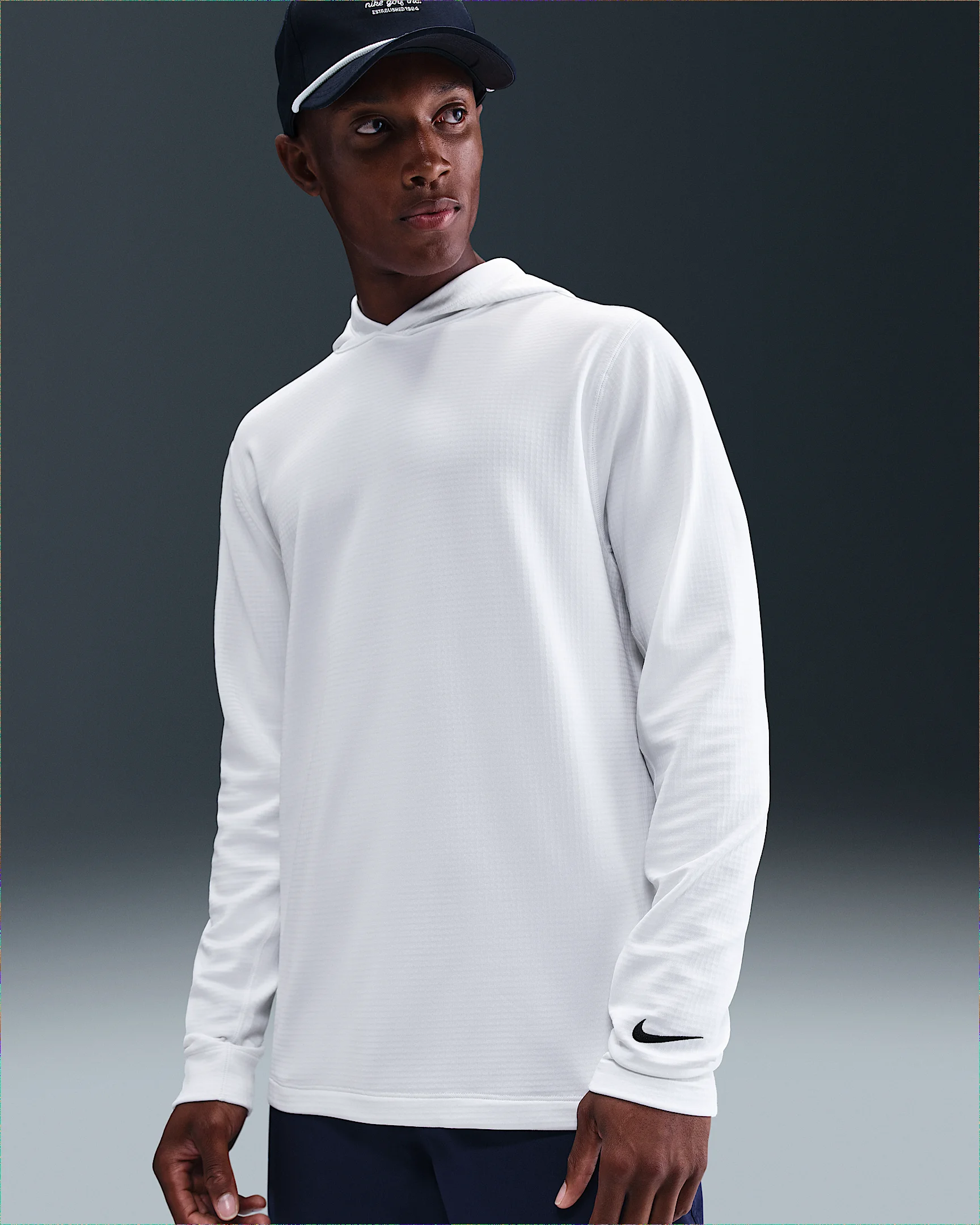 Too hot? Too cold? Never. This versatile layer uses breathable Therma-FIT technology to help you stay comfortable in the cold without overheating while you play. UV protection in the fabric means you can tee off in the morning and make the turn in the same hoodie. Product Details - 94% polyester/6% spandex - Brushed thermal knit fabric - Embroidered Swoosh logo - This product provides UVA and UVB protection from the sun only in the areas covered by the garment. To protect exposed areas, the use of good quality sunscreen is recommended. - Machine wash - Imported - Shown: White/Black - Style: IB0299-133 SIZE & FIT Model is wearing size M and is 5′11″179cm Standard fit: easy and traditional