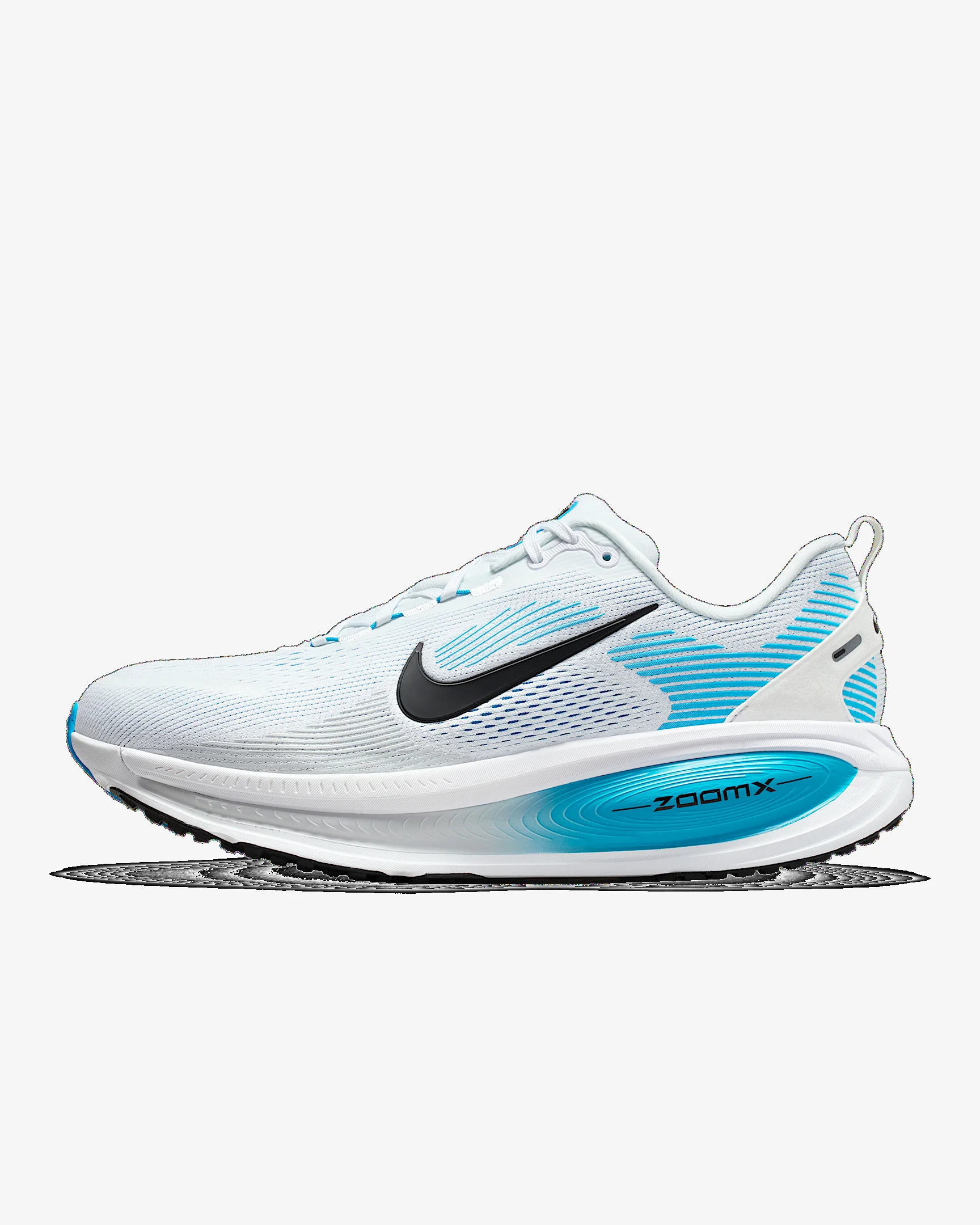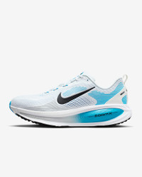 Maximum cushioning in the Vomero provides a comfortable ride for everyday runs. Our softest, most cushioned ride has lightweight ZoomX foam stacked on top of responsive ReactX foam in the midsole. Plus, a redesigned traction pattern offers a smooth heel-to-toe transition. Product Details - Weight: Approx. 325g/11.5oz (Men's US 10) - Heel-to-toe drop: 10mm - MR-10 Last - Our best, most consistent fit - Not intended for use as Personal Protective Equipment (PPE) - Shown: White/Blue Hero/Pure Platinum/Black - Style: IF0514-100