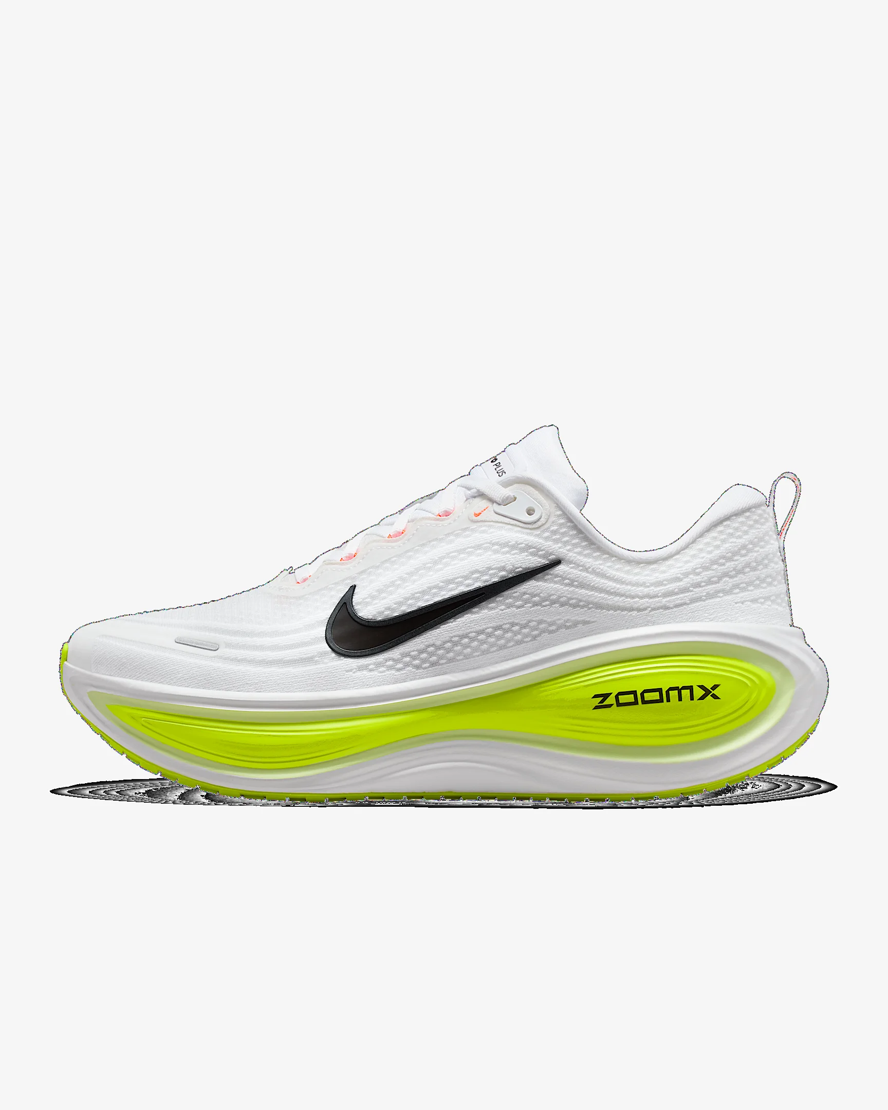 Take maximum cushioning to the next level with the Vomero Plus. It provides an ultra-comfortable ride for every day runs thanks to a mountainous stack of full-length ZoomX foam, the most responsive foam in the industry. Plus, the engineered mesh upper is made of soft, breathable yarn for a comfortable fit. Product Details - Weight: Approx. 292g/10.3oz (Men's US 10) - Heel-to-toe drop: 10mm - Webbed lace loops for an adjustable fit - Reflective details - Not intended for use as Personal Protective Equipment (PPE) - Shown: White/Volt/Barely Volt/Black - Style: HV8150-120