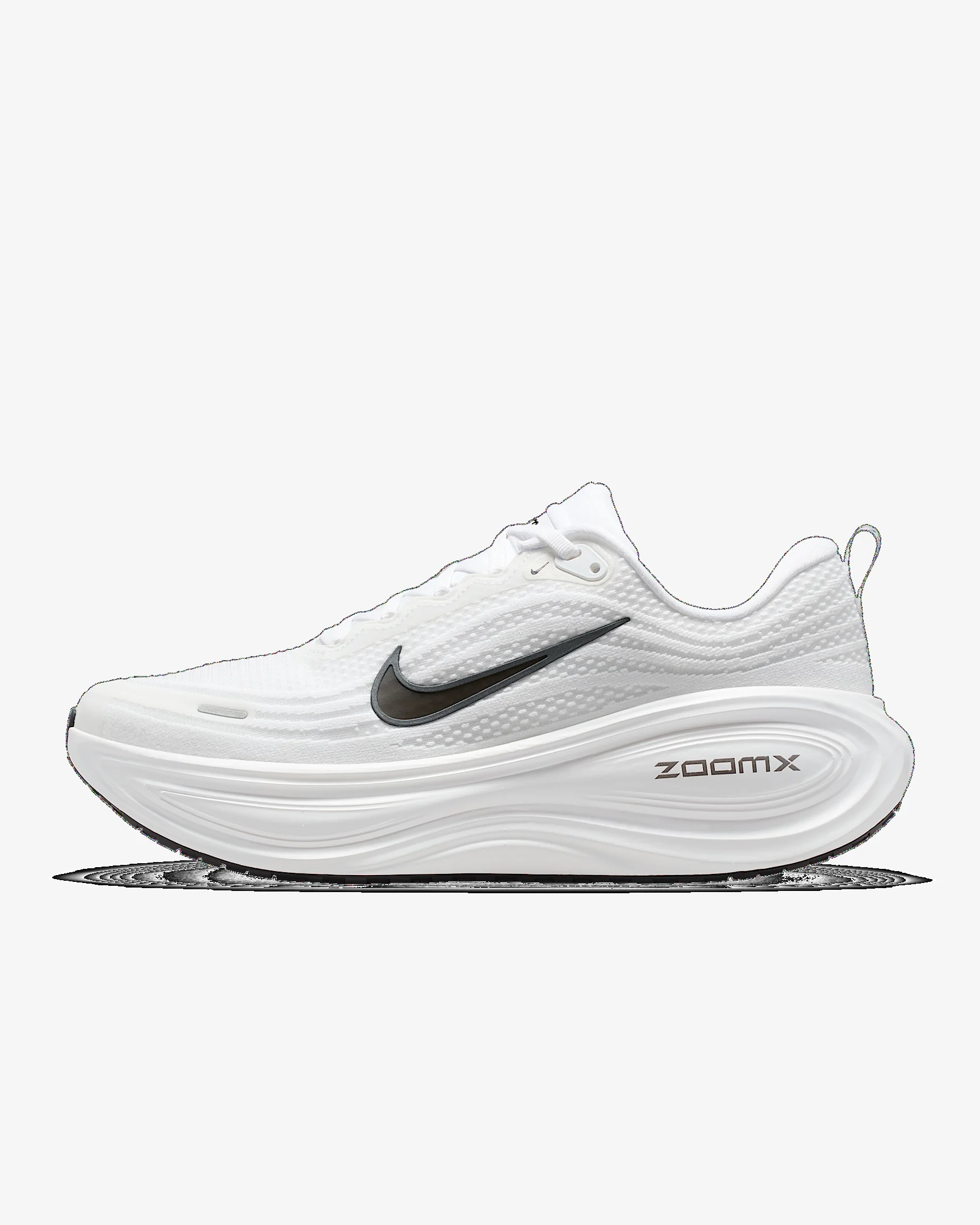 Take maximum cushioning to the next level with the Vomero Plus. It provides an ultra-comfortable ride for every day runs thanks to a mountainous stack of full-length ZoomX foam, the most responsive foam in the industry. Plus, the engineered mesh upper is made of soft, breathable yarn for a comfortable fit. Product Details - Weight: Approx. 292g/10.3oz (Men's US 10) - Heel-to-toe drop: 10mm - Webbed lace loops for an adjustable fit - Reflective details - Not intended for use as Personal Protective Equipment (PPE) - Shown: White/Dark Smoke Grey/Metallic Dark Grey/Black - Style: HV8150-101