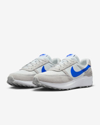 Retro gets modernized with these sleek sneakers inspired by the Nike Daybreak. Era-echoing suede and nylon are paired in complementary colors, and the updated wedge midsole gives you an extra lift. Style, comfort, iconic Waffle outsole—this is a perfect new addition to your daily rotation. Benefits - Lifted foam midsoles give you an elevated look and all-day comfort. - Soft suede overlays nod to vintage materials while textile underlays add durability. - Rubber Waffle outsole adds durable traction and heritage style. Product Details - Padded collar - Exposed foam tongue - Traditional lacing - Perforations on heel - Shown: Flat Silver/White/Photon Dust/Hyper Royal - Style: FJ4195-005