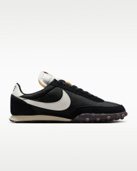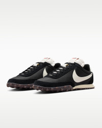 Eras collide when you lace up in the Nike Waffle Racer. It pairs old-school running details like a moccasin-inspired upper and an iconic Waffle sole with modern elements like fresh colors and a comfortable foam midsole. Benefits - Suede on the upper has a retro look and feel. - Foam in the midsole gives cushioning and support. - The rubber Waffle outsole offers durability and great multi-surface traction. Product Details - Shown: Black/Coconut Milk/Gum Dark Brown/Sail - Style: IM8658-001