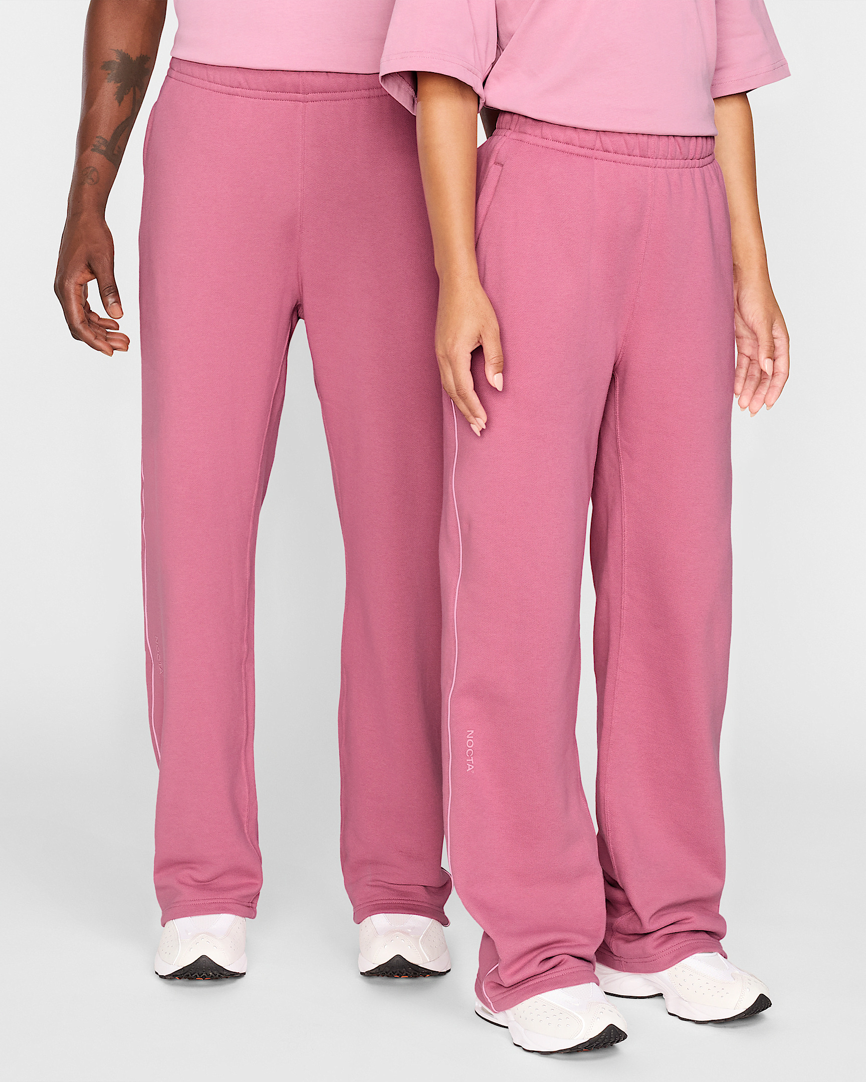 These premium open-hem sweatpants feature a new exclusive fleece that's soft and structured. Pants include reflective piping and zippered pockets. Benefits - Designed to feel relaxed through the seat and thighs for a casual fit you can dress up or down. - An elastic waistband and internal drawcord provide a comfortable, custom fit. Product Details - NOCTA-branded zippers at pockets - Body: 82% cotton/18% polyester. Pocket bags: 100% cotton. - Machine wash - Imported - Shown: Desert Berry/Elemental Pink/Elemental Pink - Style: FZ4675-667 SIZE & FIT Female model is wearing size S and is 5'8"172cm Male model is wearing size M and is 6'3"189cm Standard fit: easy and traditional