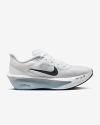The Zoom Fly 6 is with you every step of your run. Lighter than the Zoom Fly 5, its responsive ZoomX foam adds energy return to each stride, while a carbon fiber plate helps propel you to the finish line. Benefits - ZoomX foam, Nike’s lightest and most responsive foam, delivers our most energy return with every stride you take. - Full-length carbon fiber plate increases efficiency and responsiveness. - Thin rubber outsole is lightweight and grippy on the road. Product Details - Weight: Approx. 265 g/9.3 oz (Men's US 10) - Heel-to-toe drop: 8 mm - Synthetic leather on upper - Not intended for use as Personal Protective Equipment (PPE) - Shown: White/Pure Platinum/Obsidian Mist/Gridiron - Style: FN8454-104