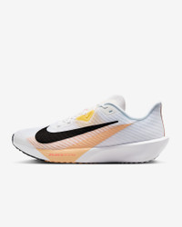 The Nike Zoom Rival Fly 4 can help you push your pace. Its lightweight, low-profile design has a forefoot Air Zoom unit and Cushlon 3.0 foam to help keep you fast on the road and fresh for your miles. Product Details - Weight: Approx. 258g/9.1oz (Men's US 10) - Heel-to-toe drop: 8mm - Shown: White/Orange Chalk/Soft Yellow/Black - Style: FV6040-103