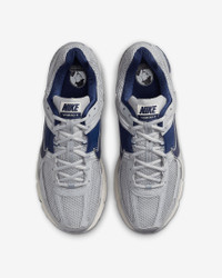 Carve a new lane for yourself in the Zoom Vomero 5—your go-to for complexity, depth and now, easy styling. The richly layered design includes textiles, synthetic suede and plastic accents that come together to make one of the coolest sneakers of the season. A neutral palette makes them a certain win for any 'fit your wardrobe throws at you. Taking early 2000s running to modern heights, it's a true tech meets low-key love story. Benefits - Synthetic leather on the upper adds durability while mesh adds breathability. - Foam midsole with Zoom Air cushioning offers a responsive, smooth ride. - Plastic caging on the side adds support. - Ventilation ports on the heel keep it airy and comfortable. - Rubber outsole gives you durable traction. Product Details - Reflective details - Not intended for use as Personal Protective Equipment (PPE) - Shown: Vast Grey/Wolf Grey/Pale Ivory/Blue Void - Style: FB9149-003