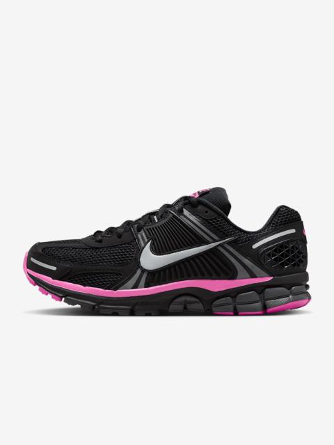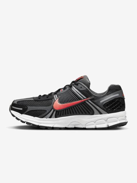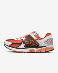 Carve a new lane for yourself in the Zoom Vomero 5—your go-to for complexity, depth and now, easy styling. The richly layered design includes textiles, synthetic suede and plastic accents that come together to make one of the coolest sneakers of the season. A neutral palette makes them a certain win for any 'fit your wardrobe throws at you. Taking early 2000s running to modern heights, it's a true tech meets low-key love story. Benefits - Synthetic leather on the upper adds durability while mesh adds breathability. - Foam midsole with Zoom Air cushioning offers a responsive, smooth ride. - Plastic caging on the side adds support. - Ventilation ports on the heel keep it airy and comfortable. - Rubber outsole gives you durable traction. Product Details - Reflective details - Not intended for use as Personal Protective Equipment (PPE) - Shown: Total Orange/White/Metallic Platinum/Black - Style: FB9149-800