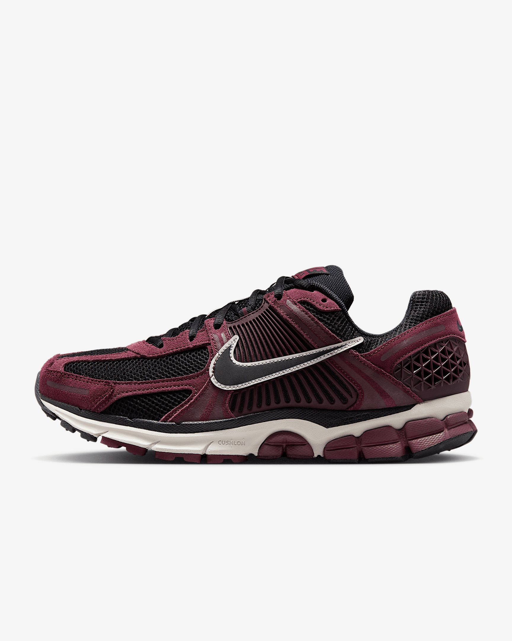Carve a new lane for yourself in the Zoom Vomero 5—your go-to for complexity, depth and easy styling. The richly layered design includes textiles, leather and plastic accents that come together to make one of the coolest sneakers of the season. Benefits - Upper mixes real and synthetic leather for a layered look built to last. - Mesh panels and ventilation ports on the heel keep it light and breathable. - Snappy and responsive, Zoom Air cushioning helps provide a quick-off-the-ground sensation. - Plastic caging on the side creates a supportive feel. - Rubber outsole gives you durable traction. Product Details - Reflective details - Not intended for use as Personal Protective Equipment (PPE) - Shown: Dark Team Red/Burgundy Crush/Phantom/Black - Style: HF1553-601