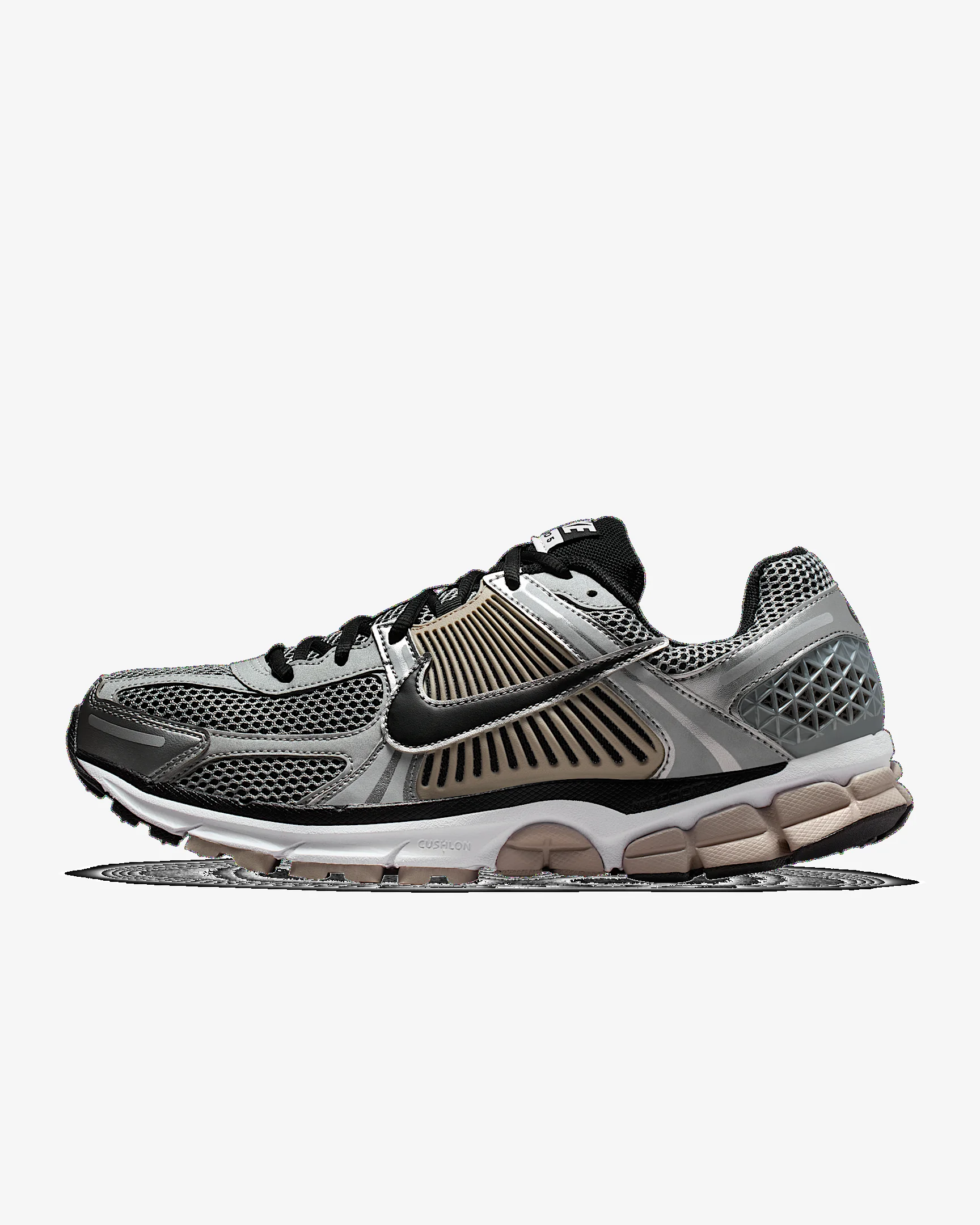 Carve out a new lane for yourself in the Zoom Vomero 5. A richly layered design pairs airy textiles with synthetic leather and plastic accents to create a complex upper that's easy to style. And check out the insole, which celebrates iconic running coach and Nike co-founder Bill Bowerman. Benefits - Synthetic leather on the upper adds durability and structure. - Mesh panels and ventilation ports on the heel keep the shoes light and breathable. - Snappy and responsive, Zoom Air cushioning helps provide a quick-off-the-ground sensation. - Plastic caging on the side offers a supportive feel. - Rubber outsole gives you durable traction. Product Details - Reflective details - Not intended for use as Personal Protective Equipment (PPE) - Shown: Metallic Silver/College Grey/Black - Style: FJ4151-007