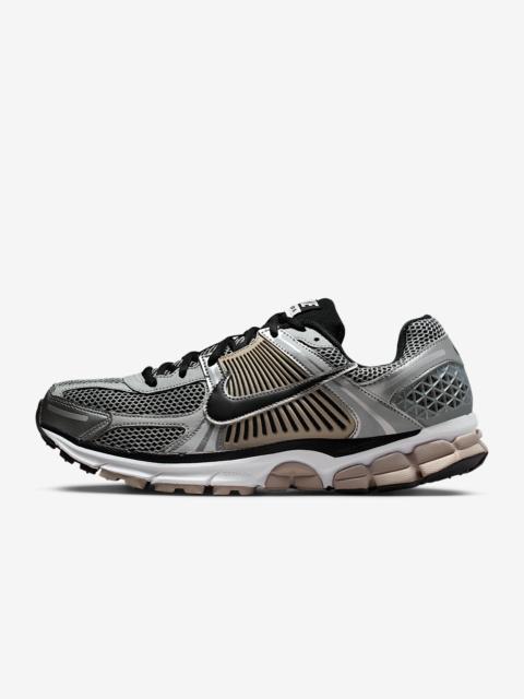 Carve out a new lane for yourself in the Zoom Vomero 5. A richly layered design pairs airy textiles with synthetic leather and plastic accents to create a complex upper that's easy to style. And check out the insole, which celebrates iconic running coach and Nike co-founder Bill Bowerman. Benefits - Synthetic leather on the upper adds durability and structure. - Mesh panels and ventilation ports on the heel keep the shoes light and breathable. - Snappy and responsive, Zoom Air cushioning helps provide a quick-off-the-ground sensation. - Plastic caging on the side offers a supportive feel. - Rubber outsole gives you durable traction. Product Details - Reflective details - Not intended for use as Personal Protective Equipment (PPE) - Shown: Metallic Silver/Flat Silver/Light Crimson/Black - Style: FJ4151-005
