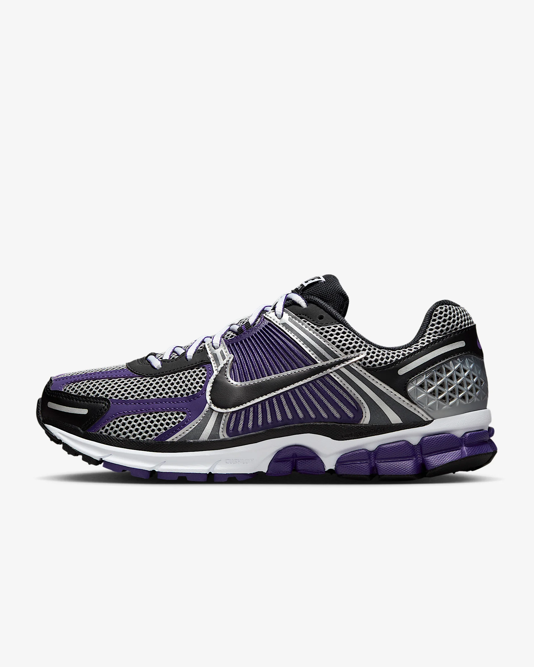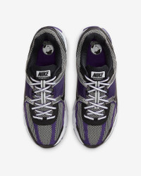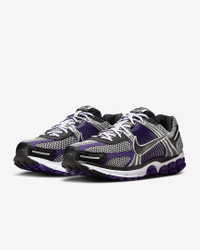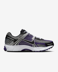 Carve a new lane for yourself in the Zoom Vomero 5—your go-to for depth, durability and easy styling. The richly layered design includes textiles, synthetic leather and plastic accents that nod to the Y2K aesthetic. Benefits - Synthetic leather on upper adds durability. - Snappy and responsive, Air Zoom cushioning helps provide a quick-off-the-ground sensation. - Rubber outsole gives you durable traction. Product Details - Reflective details - Not intended for use as Personal Protective Equipment (PPE) - Shown: Metallic Silver/Court Purple/White/Black - Style: IM2220-095