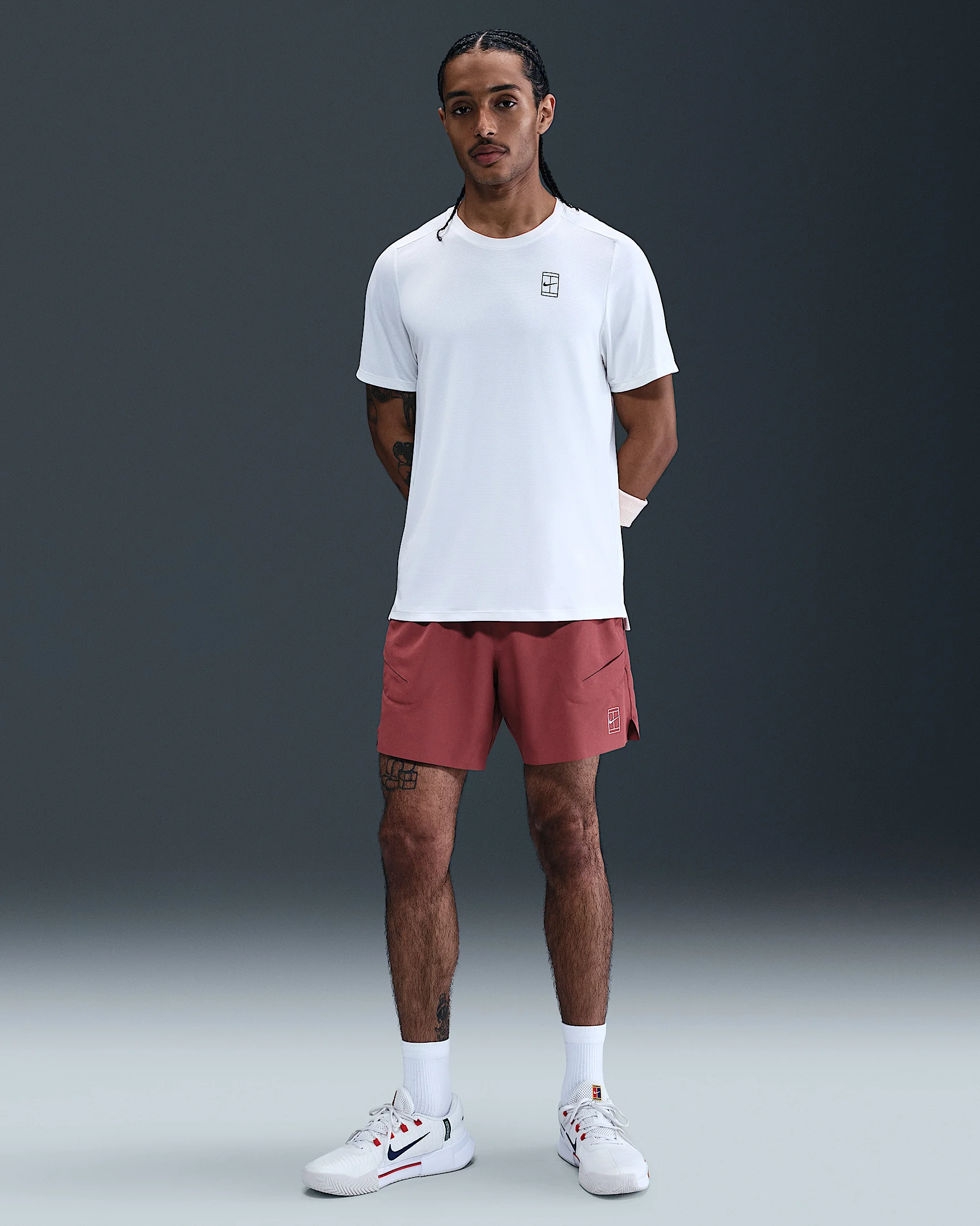 The 6" Advantage shorts are all about letting you play hard without having your clothing become a distraction. They're made from lightweight and breathable four-way stretch material. Special pockets that securely store tennis balls during play. Benefits - Nike Dri-FIT technology moves sweat away from your skin for quicker evaporation, helping you stay dry and comfortable. - Stretchy woven material feels lightweight and breathable. - Specially designed pockets let you stow tennis balls quickly and securely. - Soft elastic waistband with drawcord provides a secure fit. - Smooth hem finishes help to minimize chafing and distractions. Product Details - 6" inseam - Side vents - NikeCourt logo - Body: 89% polyester/11% spandex. Pocket bag palm side: 100% polyester. - Machine wash - Imported - Shown: Cedar/White - Style: FZ6913-661 SIZE & FIT Model is wearing size M and is 6′1″185cm Standard fit: easy and traditional