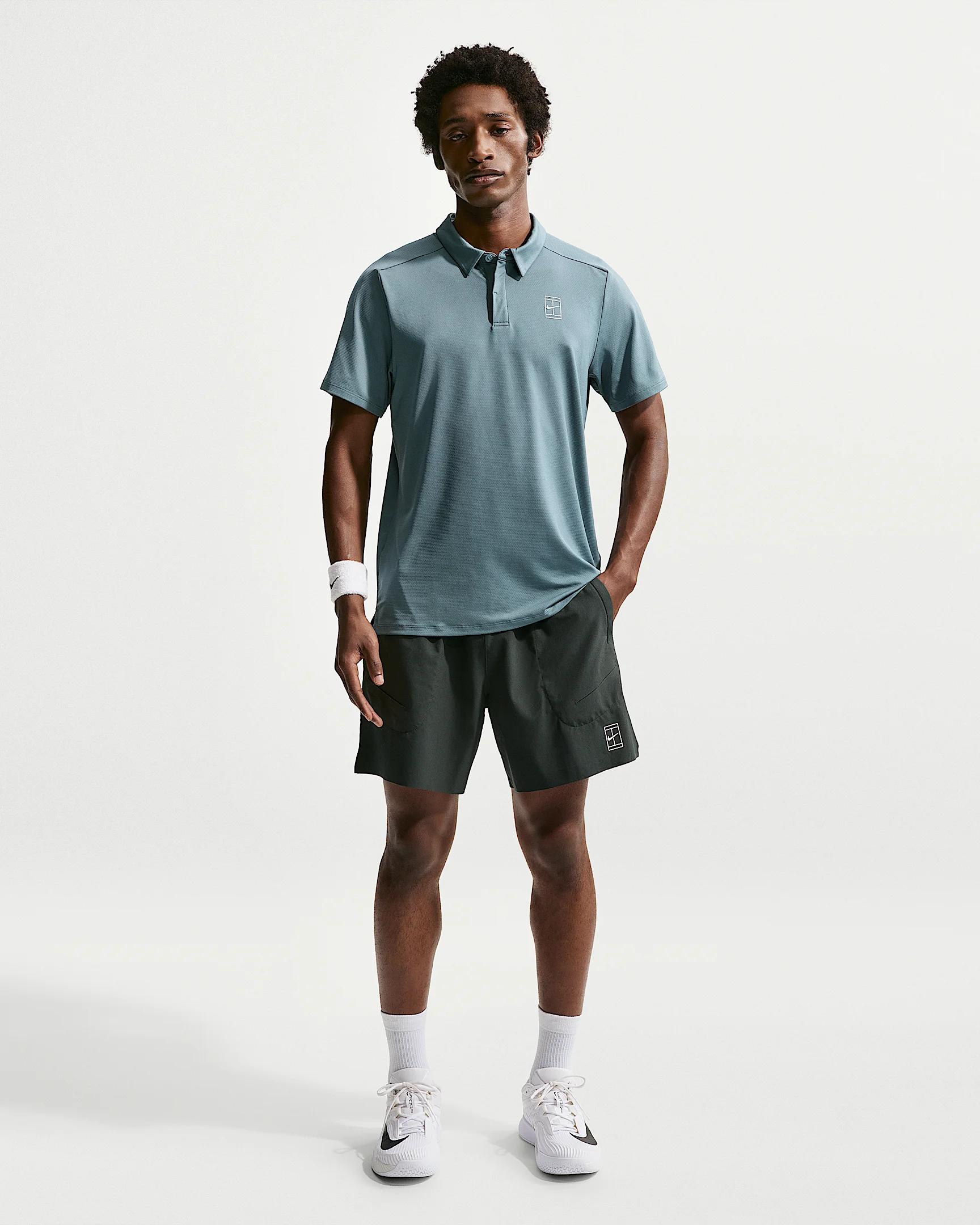 The 6" Advantage shorts are all about letting you play hard without having your clothing become a distraction. They're made from lightweight and breathable four-way stretch material. Special pockets that securely store tennis balls during play. Benefits - Nike Dri-FIT technology moves sweat away from your skin for quicker evaporation, helping you stay dry and comfortable. - Stretchy woven material feels lightweight and breathable. - Specially designed pockets let you stow tennis balls quickly and securely. - Soft elastic waistband with drawcord provides a secure fit. - Smooth hem finishes help to minimize chafing and distractions. Product Details - 6" inseam - Side vents - NikeCourt logo - Body: 89% polyester/11% spandex. Pocket bag palm side: 100% polyester. - Machine wash - Imported - Shown: Black Spruce/White - Style: FZ6913-317 SIZE & FIT Model is wearing size M and is 6′1″185cm Standard fit: easy and traditional