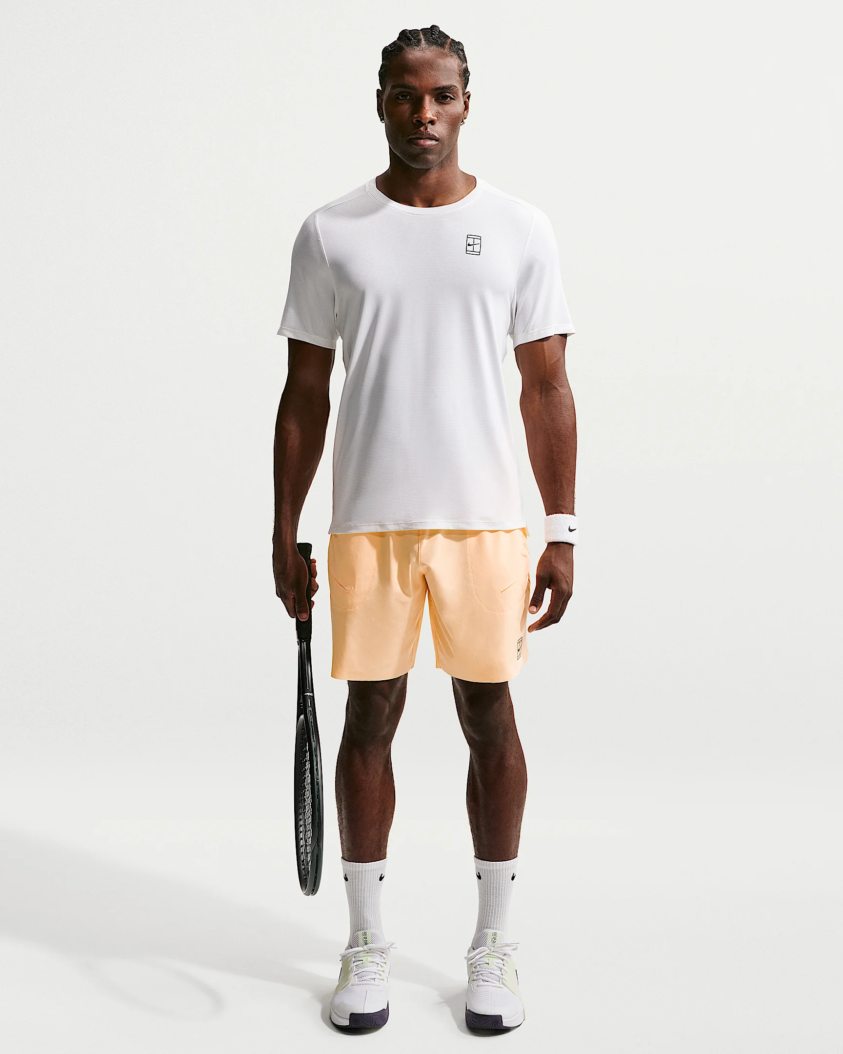 The 8" Advantage shorts are built from sweat-wicking Dri-FIT fabric with 4-way stretch. Specialized pockets are designed to hold tennis balls securely during play. Benefits - Nike Dri-FIT technology moves sweat away from your skin for quicker evaporation, helping you stay dry and comfortable. - Stretchy woven material feels lightweight and breathable. - Slightly angled pleats at the bottom of each pocket expand to let tennis balls drop into your pocket and stay secure while you play. - Low-profile hems help reduce chafing. Product Details - 8" inseam - Elastic waistband with drawcord - Reinforced side vents - NikeCourt logo - Body: 89% polyester/11% spandex. Pocket bag palm side: 100% polyester. - Machine wash - Imported - Shown: Tangerine Tint/Black - Style: FZ9322-860 SIZE & FIT Model is wearing size M and is 6′4″192cm Standard fit: easy and traditional
