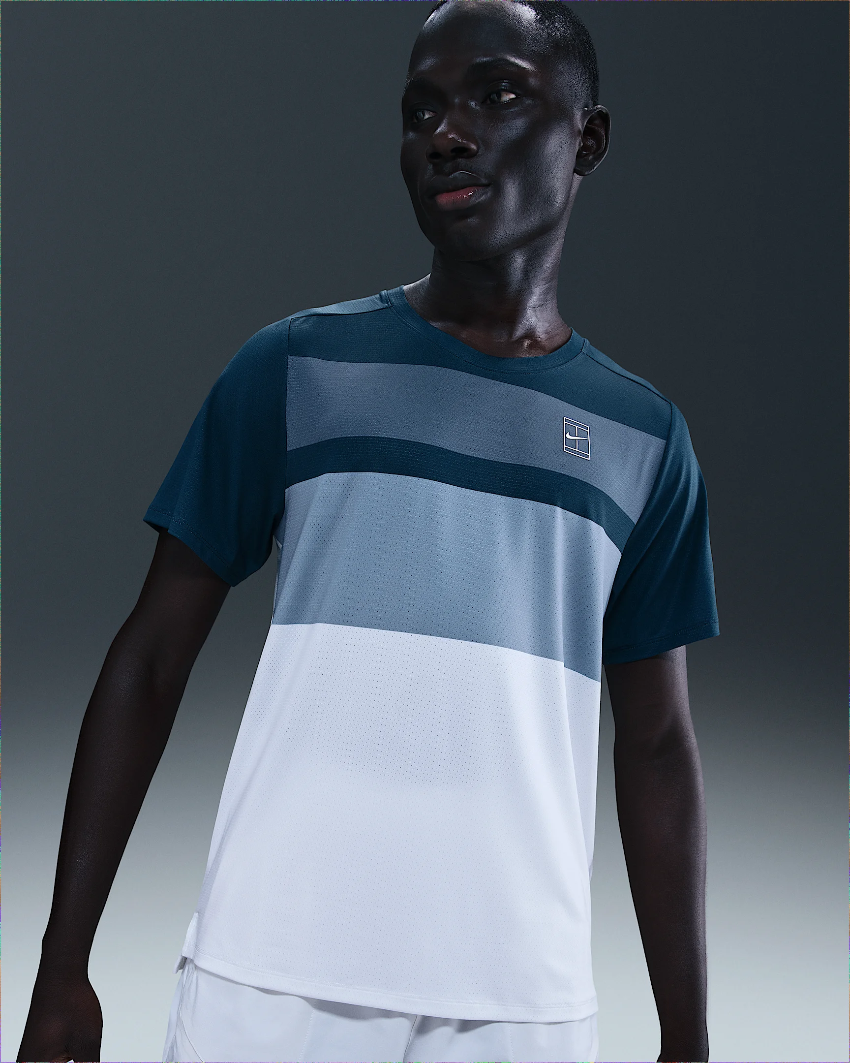 This slim-fit Advantage top lets you take the court with sweat-wicking, 4-way stretch material. The shoulder seam placement is designed to help you stay extra mobile while you rotate and drive through the ball. Benefits - Nike Dri-FIT technology moves sweat away from your skin for quicker evaporation, helping you stay dry and comfortable. - Stretchy, breathable fabric feels light and limits cling to your body. - The shoulder seam placement helps give you a smooth, natural feel through your swing. - Longer back hem provides extra coverage. Product Details - NikeCourt logo - 89% polyester/11% spandex - Machine wash - Imported - Shown: Armory Navy/White - Style: FZ9845-479 SIZE & FIT Model is wearing size M and is 6'1"184cm Sm fit: sleek and tailored
