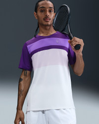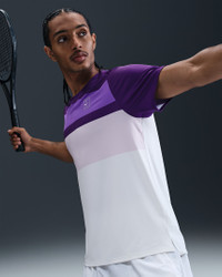 This slim-fit Advantage top lets you take the court with sweat-wicking, 4-way stretch material. The shoulder seam placement is designed to help you stay extra mobile while you rotate and drive through the ball. Benefits - Nike Dri-FIT technology moves sweat away from your skin for quicker evaporation, helping you stay dry and comfortable. - Stretchy, breathable fabric feels light and limits cling to your body. - The shoulder seam placement helps give you a smooth, natural feel through your swing. - Longer back hem provides extra coverage. Product Details - NikeCourt logo - 89% polyester/11% spandex - Machine wash - Imported - Shown: Wild Grape/White - Style: FZ9845-507 SIZE & FIT Model is wearing size M and is 6′1″185cm Sm fit: sleek and tailored