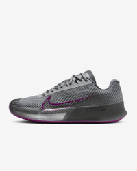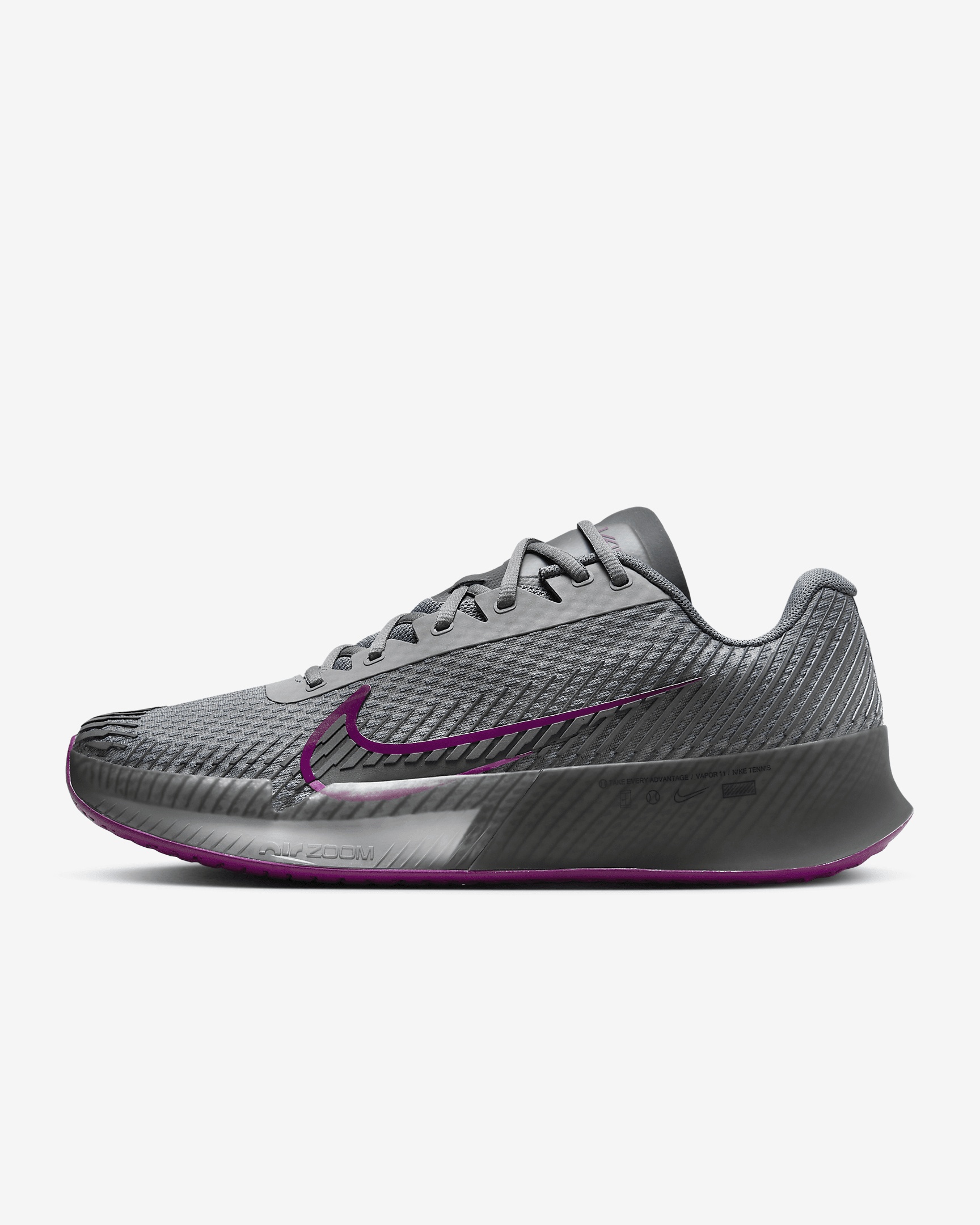 Validated by the greats of the game, the Vapor 11 is back and better than ever. Lower to the court and loaded with speed components, it helps you play at a fast pace with enough support to keep you bobbing and weaving for sets on end. Mainstays like the ultra-trusted molded sidewall and breathable upper complement a durable, quick-moving design that you’ve come to know and love. More Benefits - The herringbone outsole uses a data-informed design to create optimal grip without impacting your ability to slide. - We removed rubber in low-wear areas to help keep weight at a minimum. - Durable, reinforced mesh helps keep your feet cool and adds extra support. - Full-length foot frame on the outside of the shoe helps stabilize your foot during quick cuts. Product Details - Designed for hard-court surfaces - Mesh collar - Shown: Smoke Grey/Dark Smoke Grey/Sangria/Black - Style: DR6966-005