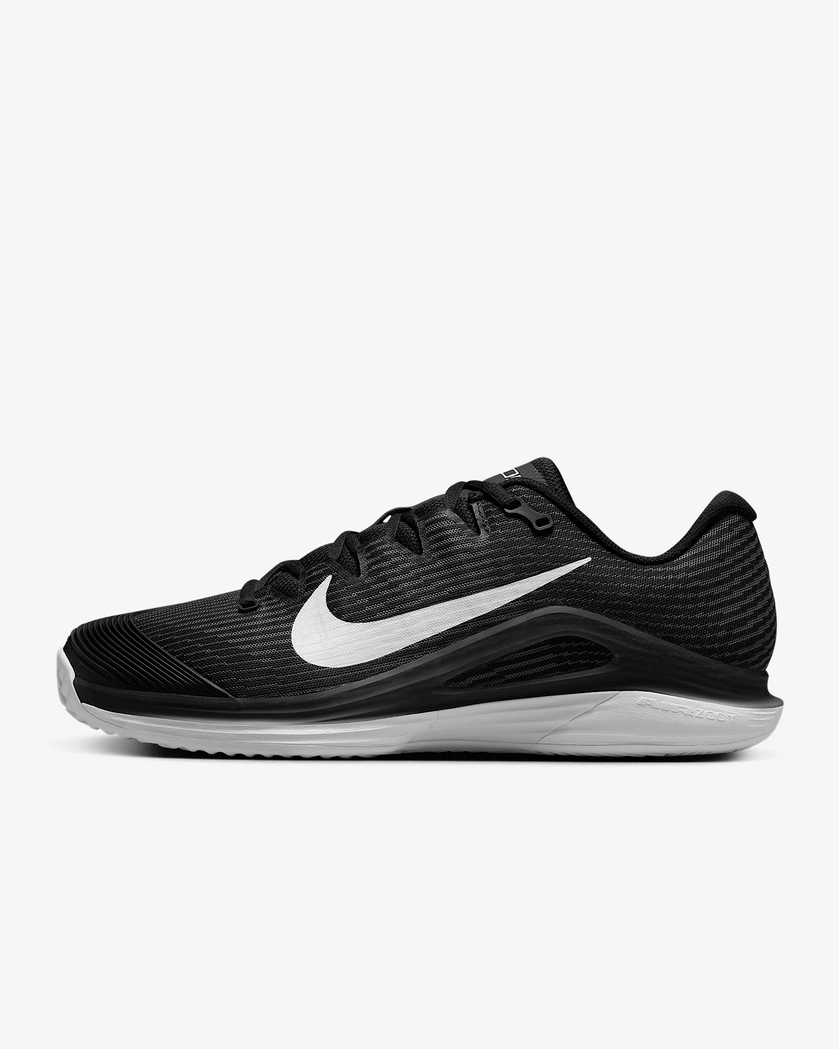 Get to every single ball with blistering speed in the Vapor 12. With a reworked upper and new rubber compound on the outsole, it's lighter and more responsive than the 11. And we brought back springy Air Zoom cushioning and our Claybreaker technology, so that you’re ready for the red dirt. More Benefits - Full midfoot fit band allows you to pull the laces tighter to enhance the fit and enable faster cuts. - Midsole foam in between the plastic and rubber, which wasn’t on the Vapor 11, helps keep you light on your feet. Product Details - Designed for wear on clay and padel court surfaces - Cushioned insole - Shown: Black/Dark Smoke Grey/White - Style: HQ6026-001