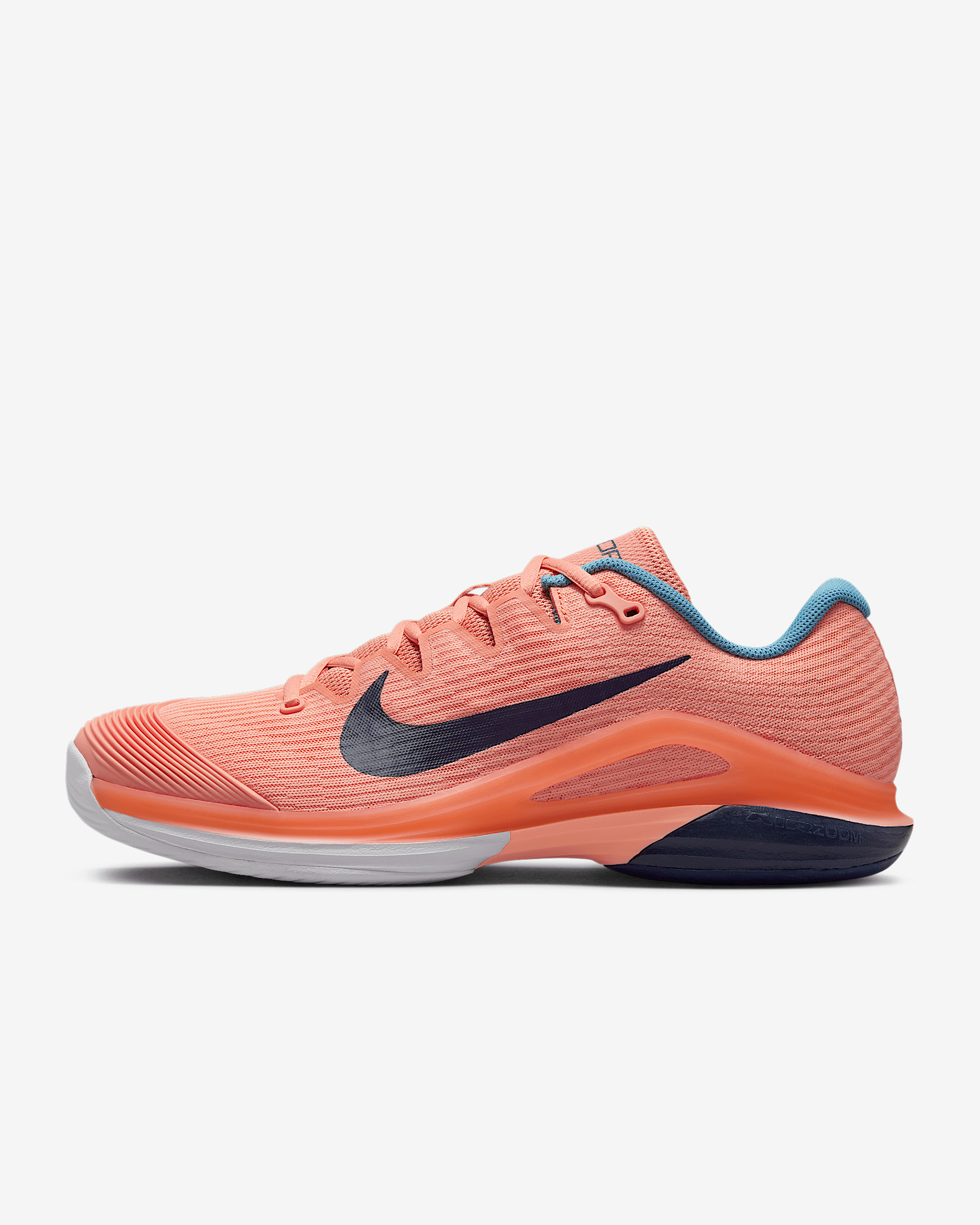Get to every single ball with blistering speed in the Vapor 12. With a reworked upper and traction pattern, it's lighter and more responsive than the 11. And we brought back Air Zoom cushioning, so you can always be on the attack. More Benefits - Full midfoot fit band allows you to pull the laces tighter to enhance the fit and enable faster cuts. - Midsole foam in between the plastic and rubber, which wasn’t on the Vapor 11, helps keep you light on your feet. Product Details - Designed for wear on hard court surfaces - Cushioned insole - Shown: Apricot Agate/White/Denim Turquoise/Obsidian - Style: FV5552-800