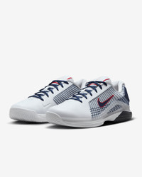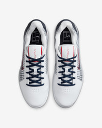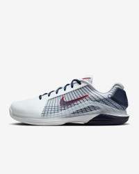 Get to every single ball with blistering speed in the Vapor 12. With a reworked upper and traction pattern, it's lighter and more responsive than the 11. And we brought back Air Zoom cushioning, so you can always be on the attack. This special design celebrates shared respect between hoopers and hard court stars, taking its cues from an iconic Hyperdunk 2008 colorway and blending it with our Vapor 12 technology. More Benefits - Full midfoot fit band allows you to pull the laces tighter to enhance the fit and enable faster cuts. - Midsole foam in between the plastic and rubber, which wasn’t on the Vapor 11, helps keep you light on your feet. Product Details - Designed for wear on hard court surfaces - Cushioned insole - Shown: White/Sport Red/Pure Platinum/Obsidian - Style: HJ0549-100