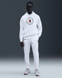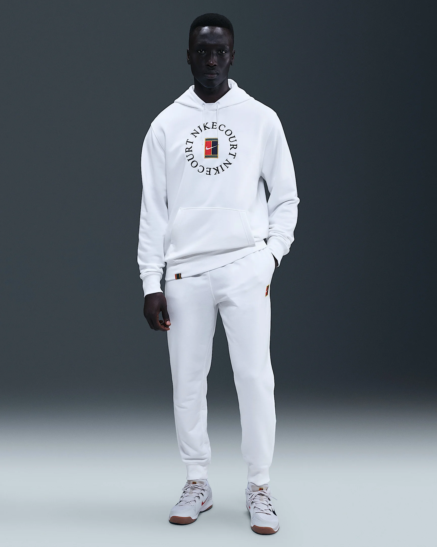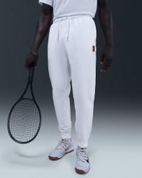 On-court performance meets off-court comfort. These soft, sweat-wicking fleece joggers feature our signature embroidered NikeCourt logo that serves up unmistakable tennis heritage. Benefits - Nike Dri-FIT technology moves sweat away from your skin for quicker evaporation, helping you stay dry and comfortable. - Smooth on the outside with unbrushed loops on the inside, this midweight French terry helps create breathability, so it’s comfy enough for you to wear all year long, no matter the temp. Product Details - Elastic waistband with drawcord - Side pockets - Back pocket - Ribbed cuffs - 54% polyester/46% cotton - Machine wash - Imported - Shown: White - Style: HM6766-100 SIZE & FIT Model is wearing size M and is 6′0″183cm Standard fit: easy and traditional