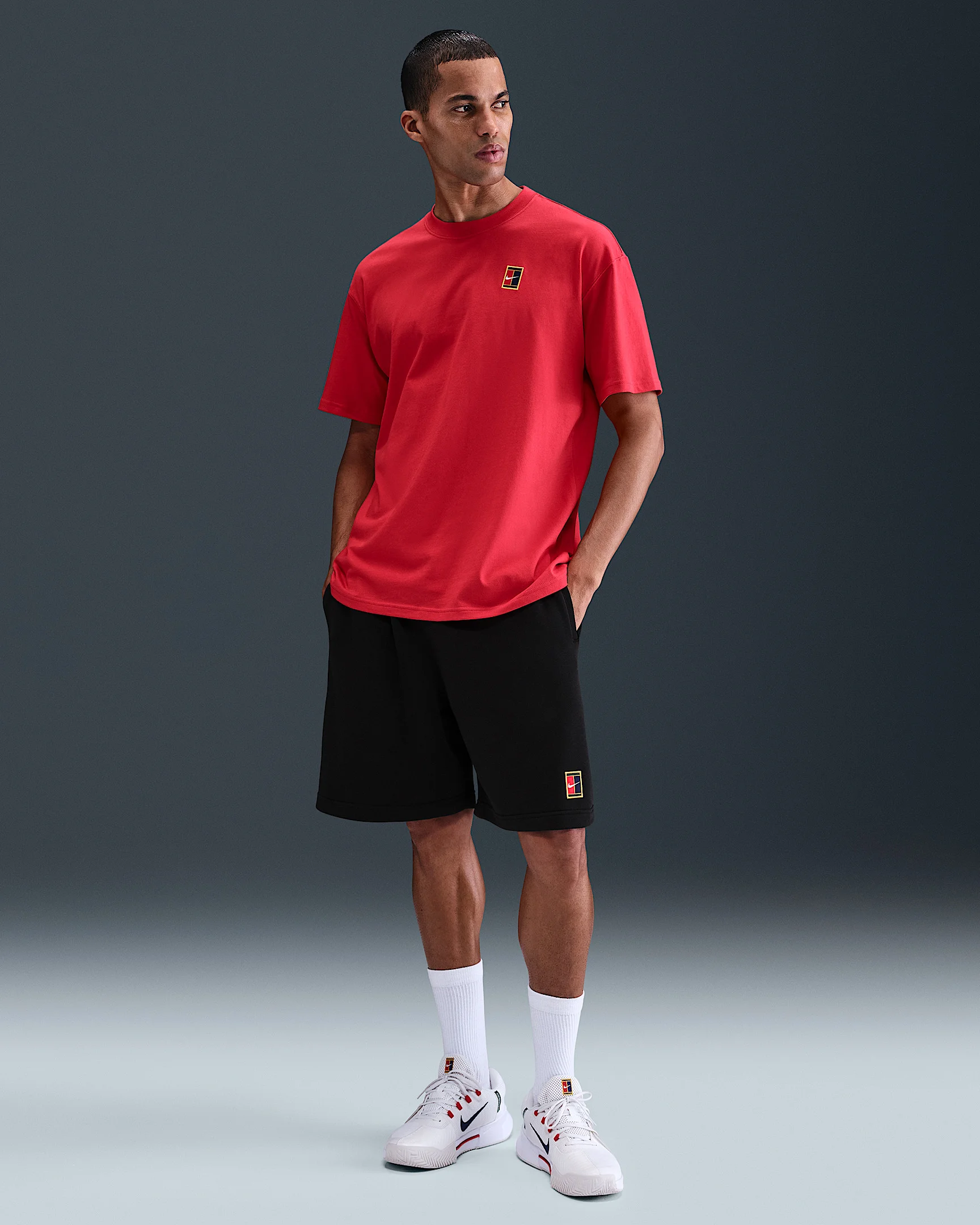 On-court performance tech meets off-court comfort. These soft, sweat-wicking fleece shorts feature our signature NikeCourt logo that serves up unmistakable tennis heritage. Benefits - Nike Dri-FIT technology moves sweat away from your skin for quicker evaporation, helping you stay dry and comfortable. - This midweight French terry fabric (with unbrushed loops on the inside) gives structure, breathability and softness—so it's just as ready for the gym as it is for the couch. - Elastic waistband with drawcord provides a secure fit. Product Details - Side pockets - Back pocket - 54% polyester/46% cotton - Machine wash - Imported - Shown: Black - Style: HM6768-010 SIZE & FIT Model is wearing size M and is 6′2″187cm Standard fit: easy and traditional
