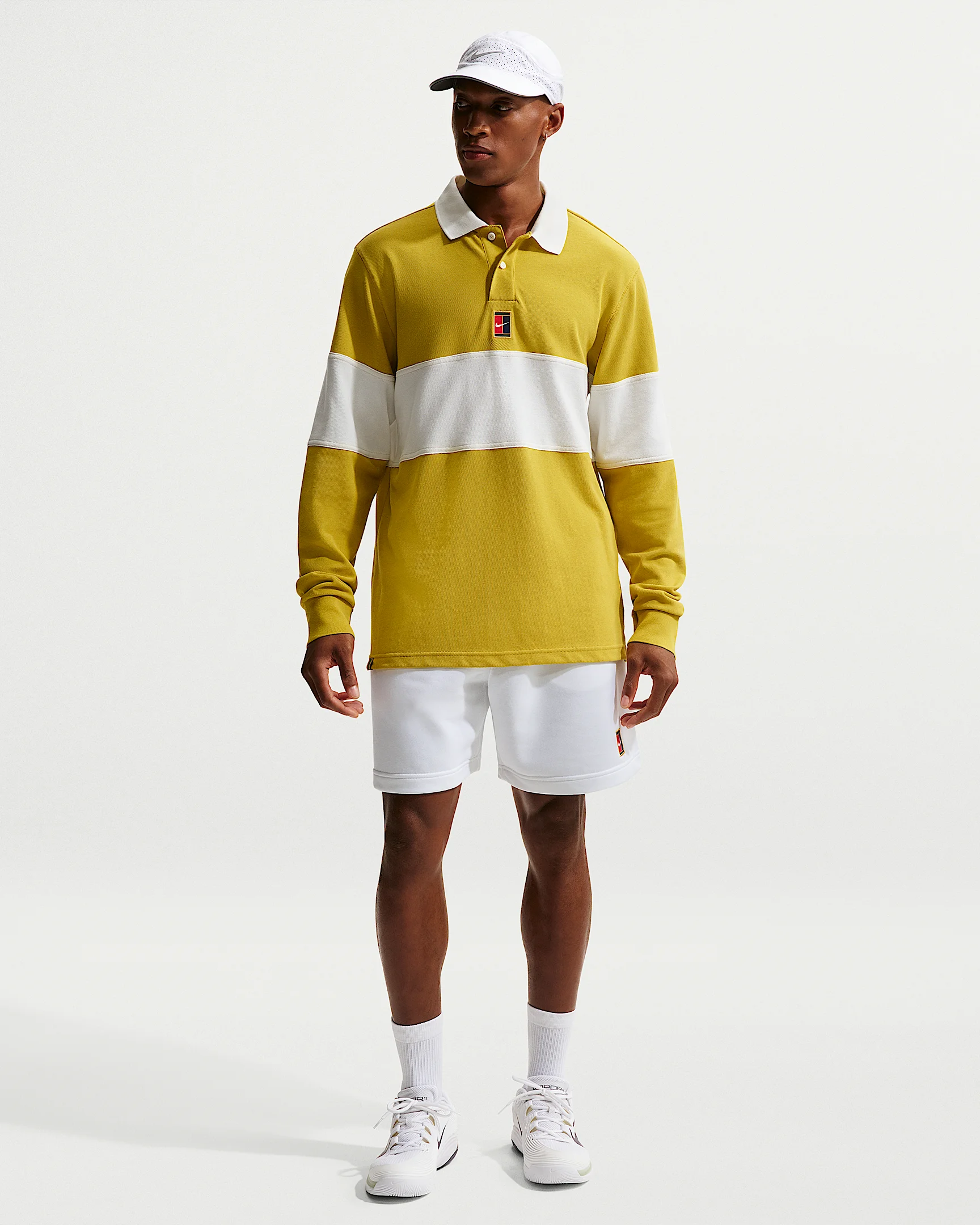 On-court performance tech meets off-court comfort. These soft, sweat-wicking fleece shorts feature our signature NikeCourt logo that serves up unmistakable tennis heritage. Benefits - Nike Dri-FIT technology moves sweat away from your skin for quicker evaporation, helping you stay dry and comfortable. - This midweight French terry fabric (with unbrushed loops on the inside) gives structure, breathability and softness—so it's just as ready for the gym as it is for the couch. - Elastic waistband with drawcord provides a secure fit. Product Details - Side pockets - Back pocket - 54% polyester/46% cotton - Machine wash - Imported - Shown: White - Style: HM6768-100 SIZE & FIT Model is wearing size M and is 5'11"179cm Standard fit: easy and traditional