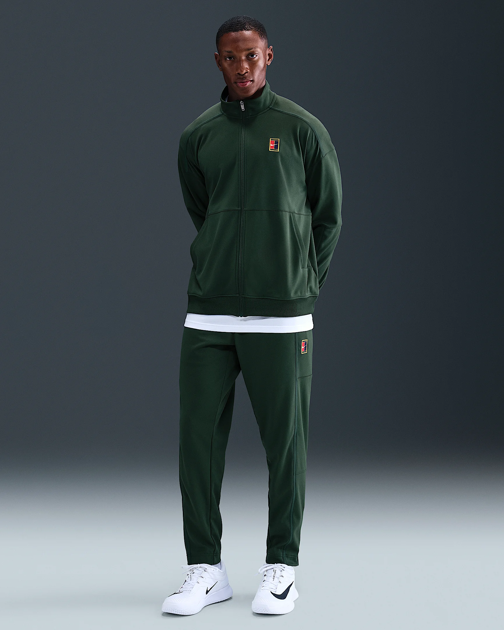 These heritage tennis pants offer a classic, comfortable look to your pre- and post-match outfit. They feature soft, peached fabric, a tapered leg and a throwback NikeCourt patch. Benefits - Soft poly-knit fabric has a peached texture on the inside for extra softness. - Zippered cuffs make the pants easy to take on and off over your shoes. Product Details - Elastic waistband with drawcord - Multicolor NikeCourt patch - Side pockets - Body/Mesh: 100% polyester - Machine wash - Imported - Shown: Fir/Fir - Style: FZ6928-323 SIZE & FIT Model is wearing size M and is 5′11″179cm Standard fit: easy and traditional
