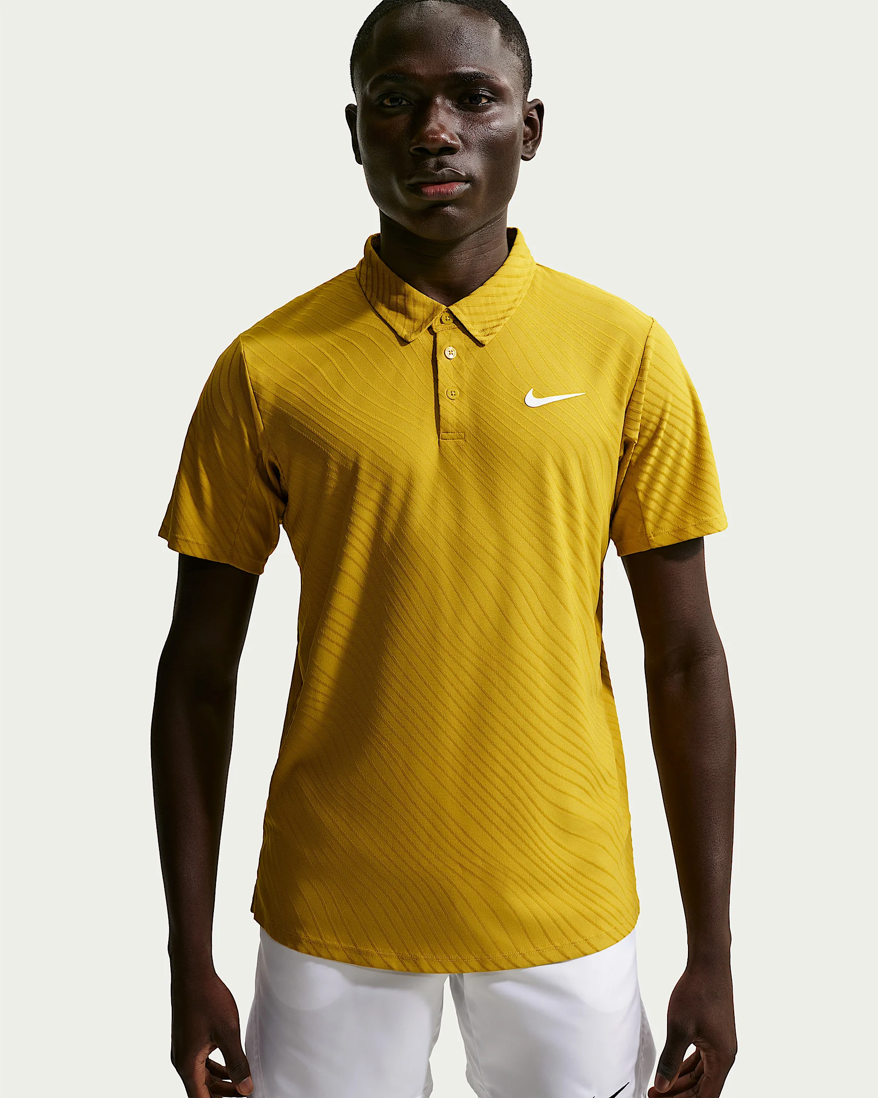 For when it's so hot out, it's wavy, look to the advanced sweat-wicking tech of this Dri-FIT ADV polo. Made for our best tennis players to wear in Melbourne, its lightweight four-way stretch fabric is sure to help you move up the leader board. Benefits - Nike Dri-FIT ADV levels up our sweat-wicking technology with advanced cooling and zones of breathability to help you stay dry and comfortable. - Serve sleeve frees up your shoulders so you can serve with a full range of motion. - Drop-tail hem provides consistent coverage no matter your position. - Fold over stitch gives the hem a clean, distraction-free finish. Product Details - 100% polyester - Machine wash - Imported - Shown: Saffron Quartz/Turf Orange/White - Style: IB1020-389 SIZE & FIT Model is wearing size M and is 6′1″184cm Standard fit: easy and traditional