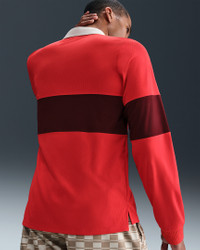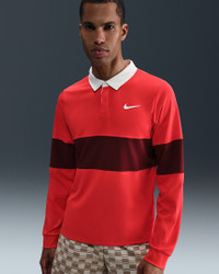 This rugby-inspired polo is built for peak on-court performance. Its four-way stretch fabric and sweat-wicking Dri-FIT technology team up to help keep you cool—even when the play heats up. Benefits - Nike Dri-FIT technology moves sweat away from your skin for quicker evaporation, helping you stay dry and comfortable. - Stretchy knit fabric is lightweight, breathable and limits cling to your body. - Extended back hem provides extra coverage. Product Details - Ribbed cuffs - 100% polyester - Machine wash - Imported - Shown: Light Crimson/Dark Team Red/White - Style: IB8141-696 SIZE & FIT Model is wearing size M and is 6′2″187cm Standard fit: easy and traditional