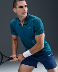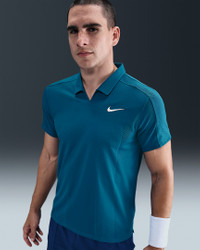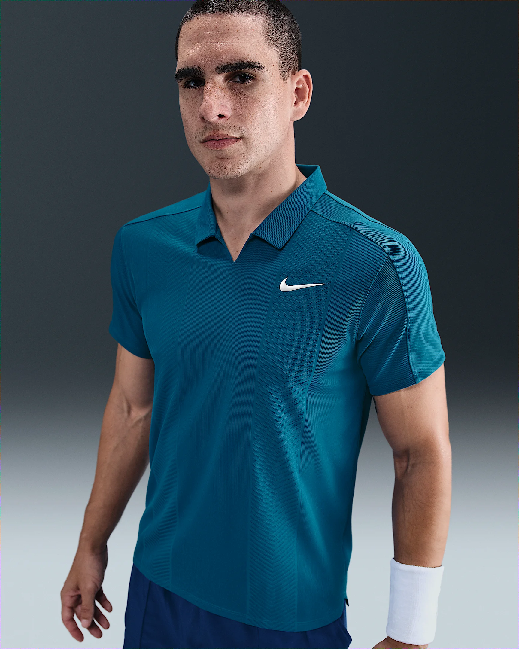 This polo's simplified buttonless collar and strategically placed shoulder seams help you swing freely. As the intensity rises, advanced sweat-wicking technology helps you stay cool in the moment. Benefits - Nike Dri-FIT ADV levels up our sweat-wicking technology with advanced cooling and zones of breathability to help you stay dry and comfortable. - Lightweight four-way stretch material limits cling to your body. - Shoulder seams are moved forward and wrapped through the upper back to help you swing naturally. - Extended back hem provides extra coverage when bending or reaching. - Bonded hems replace traditional sewn hems to create a smooth fit with less potential for chafing. Product Details - 100% polyester - Machine wash - Imported - Shown: Green Abyss - Style: HM6752-301 SIZE & FIT Model is wearing size M and is 6′2″188cm Sm fit: sleek and tailored