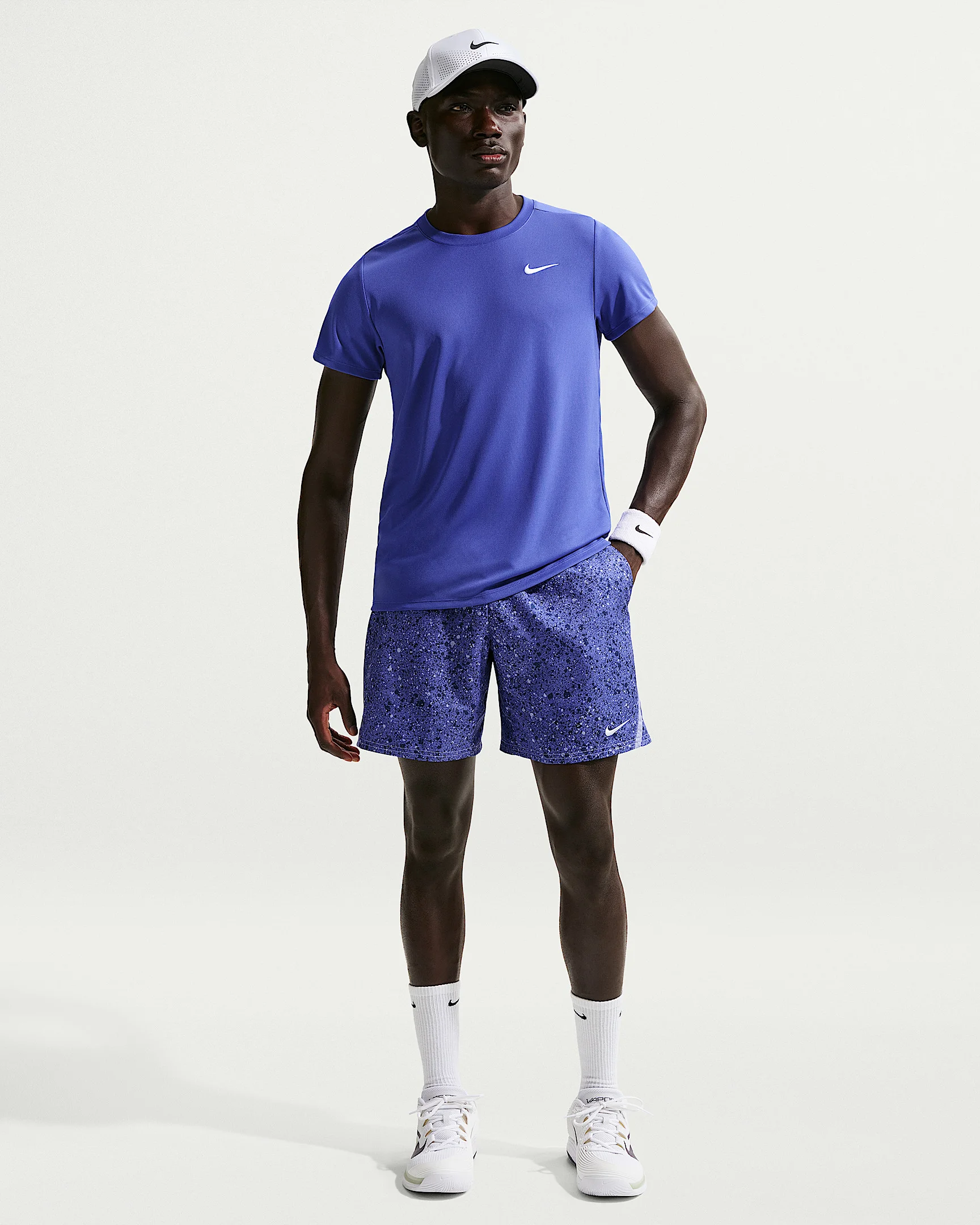 Ready to train, ready to play—these sweat-wicking shorts help keep you dry on and off the court. Mesh-lined pockets provide quick storage for balls and essentials. Benefits - Nike Dri-FIT technology moves sweat away from your skin for quicker evaporation, helping you stay dry and comfortable. - Smooth woven fabric is lightweight and durable. - Elastic waistband with drawcord provides a fit that feels just right. - Mesh pockets hold your tennis essentials close. Product Details - 7" inseam - 2-way stretch-woven fabric - Elastic waistband with drawcord - Embroidered Swoosh logo - Side pockets - Body: 100% polyester. Pockets: 100% polyester. - Machine wash - Imported - Shown: Lapis/Light Thistle/White - Style: IB1080-430 SIZE & FIT Model is wearing size M and is 6′1″184cm Standard fit: easy and traditional