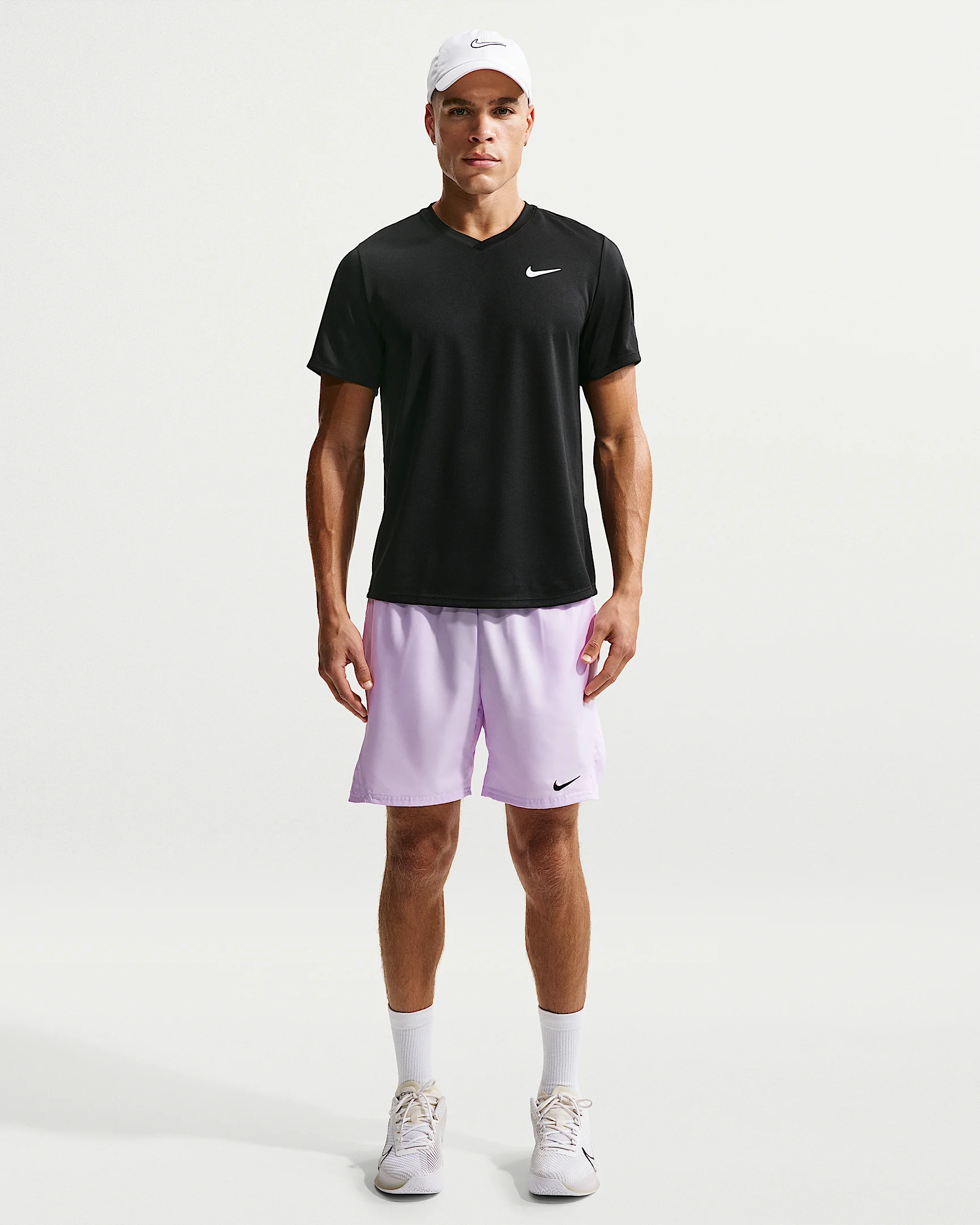 Game, set, match. The NikeCourt Victory Shorts are designed for tennis and built to perform for all your other favorite exercises. They're light and durable, with a sweat-wicking design that helps keep you feeling fresh with each point. Benefits - Nike Dri-FIT technology moves sweat away from your skin for quicker evaporation, helping you stay dry and comfortable. - Smooth woven fabric is lightweight and durable. - Elastic waistband with drawcord provides a fit that feels just right. - Mesh pockets hold your tennis essentials close. Product Details - 7" inseam - Body/Pocket bags: 100% polyester - Machine wash - Imported - Shown: Violet Mist/Black - Style: FD5380-511 SIZE & FIT Model is wearing size M and is 6′3″191cm Standard fit: easy and traditional