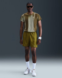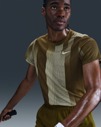 Breathable, stretchy and sweat-wicking, the Victory top is always ready to hit the court. The back shoulder seam placement is designed to stay out of the way while you rotate and drive through the ball. Benefits - Nike Dri-FIT technology moves sweat away from your skin for quicker evaporation, helping you stay dry and comfortable. - Soft and breathable, this smooth knit helps you stay cool and comfortable. - Offset seam construction on the back helps with range of motion through your shot. Product Details - Embroidered Swoosh logo - 100% polyester - Machine wash - Imported - Shown: Olive Flak/White - Style: HM6505-368 SIZE & FIT Model is wearing size M and is 6′2″188cm Standard fit: easy and traditional