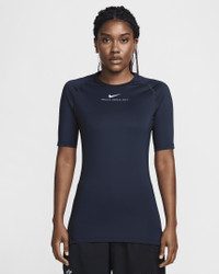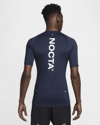 NOCTA's bringing a stretchy short-sleeve base layer top to your arsenal. The screen-printed shoulder design and silicone-printed graphics on the front and back infuse your look with a new kind of hoops-inspired energy. More Benefits - Slightly longer hem lets you tuck it into a pair of joggers or shorts while you play basketball. Product Details - Tight fit for a body-hugging feel - 91% polyester/9% spandex - Machine wash - Imported - Shown: College Navy/White - Style: DM1710-419 SIZE & FIT Tight fit: snug and form-fitting
