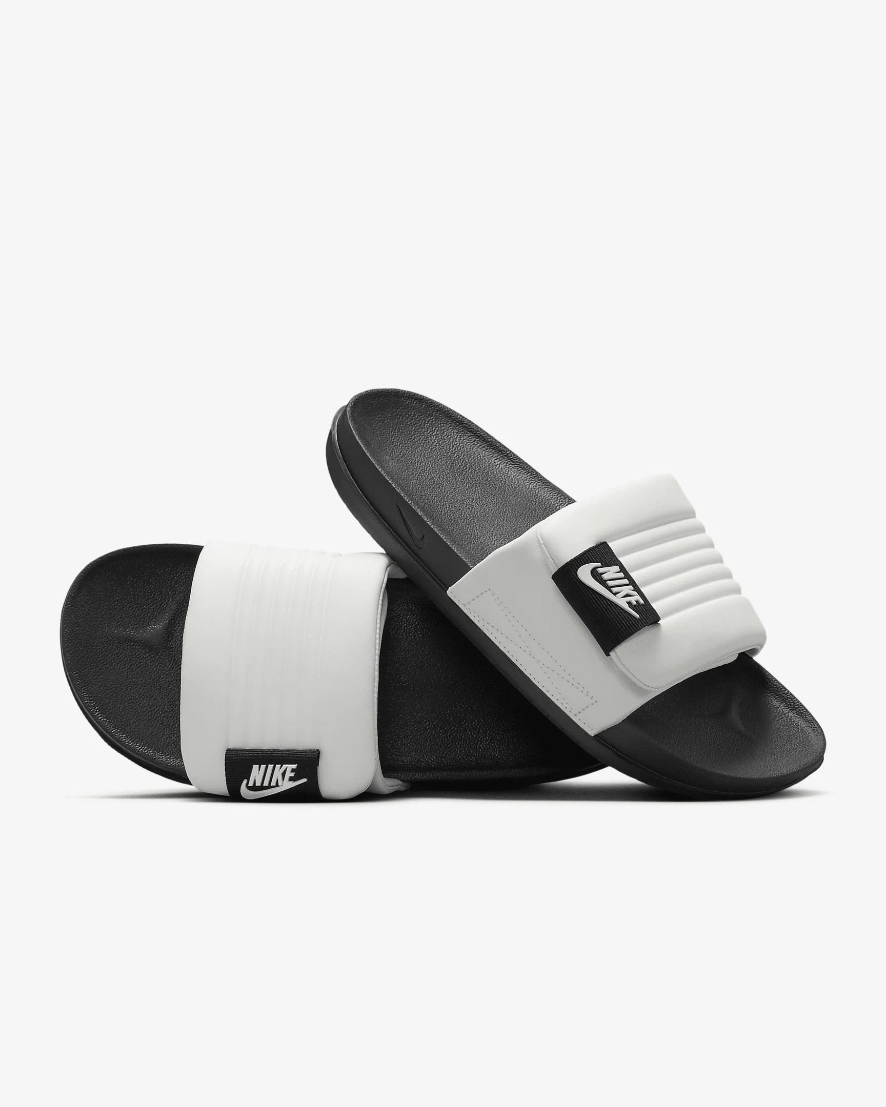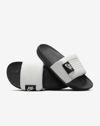Post game, errands and more—adjust your comfort on the go. The adjustable, padded strap lets you perfect your fit, while the lightweight foam midsole brings first-class comfort to your feet. Benefits - Contoured footbed cradles your foot to help keep it in place. - Dual-density foam provides lightweight cushioning. - Hook-and-loop strap is lined with soft fabric for extra comfort. - Logo label doubles as a pull tab to help open the strap. - Outsole features a pivot circle pattern for durability and traction. Product Details - Shown: Summit White/Black/Summit White - Style: DQ9624-100