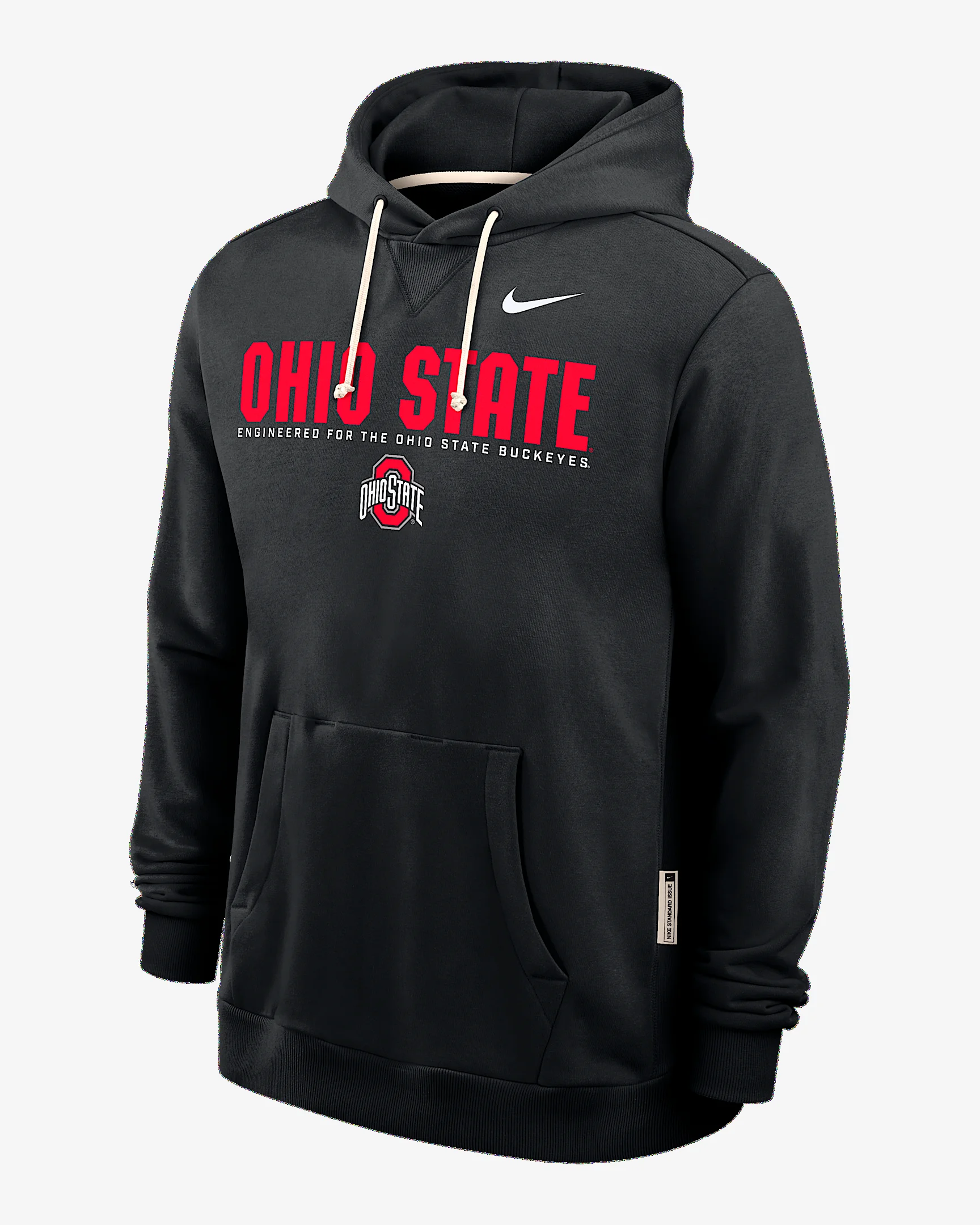 Featuring bold team graphics, the Sideline Hoodie combines sweat-wicking technology with a soft fleece lining to help you comfortably support Ohio State in cooler weather. Benefits - Nike Dri-FIT technology moves sweat away from your skin for quicker evaporation, helping you stay dry and comfortable. - Dolman sleeves help increase range of motion with a roomy fit under the arms. Product Details - Hood with drawstring - Front pocket - Zippered pocket at right side - 53% polyester/47% cotton - Machine wash - Imported - Shown: Black - Style: 03AZ00AOH-HSY