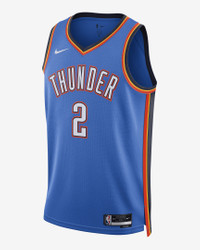 Every team has its true colors, an unmistakable identity that sets it apart from the rest of the league. Honoring a rich hoops heritage, this Oklahoma City Thunder jersey is inspired by what the pros wear on the hardwood, from squad details to lightweight, sweat-wicking mesh. It helps keep you dry and cool on or off the court while you rep your favorite player and the game you love. Benefits - Nike Dri-FIT technology moves sweat away from your skin for quicker evaporation, helping you stay dry and comfortable. - Breathable mesh helps keep you cool on or off the court. Product Details - Twill player name and number - Heat-applied graphics - Jock tag at hem - 100% polyester - Machine wash - Imported - Shown: Signal Blue - Style: DN2016-403 SIZE & FIT Standard fit: easy and traditional If you typically wear men's styles, please select your usual size. If you typically wear women's styles, please size down.