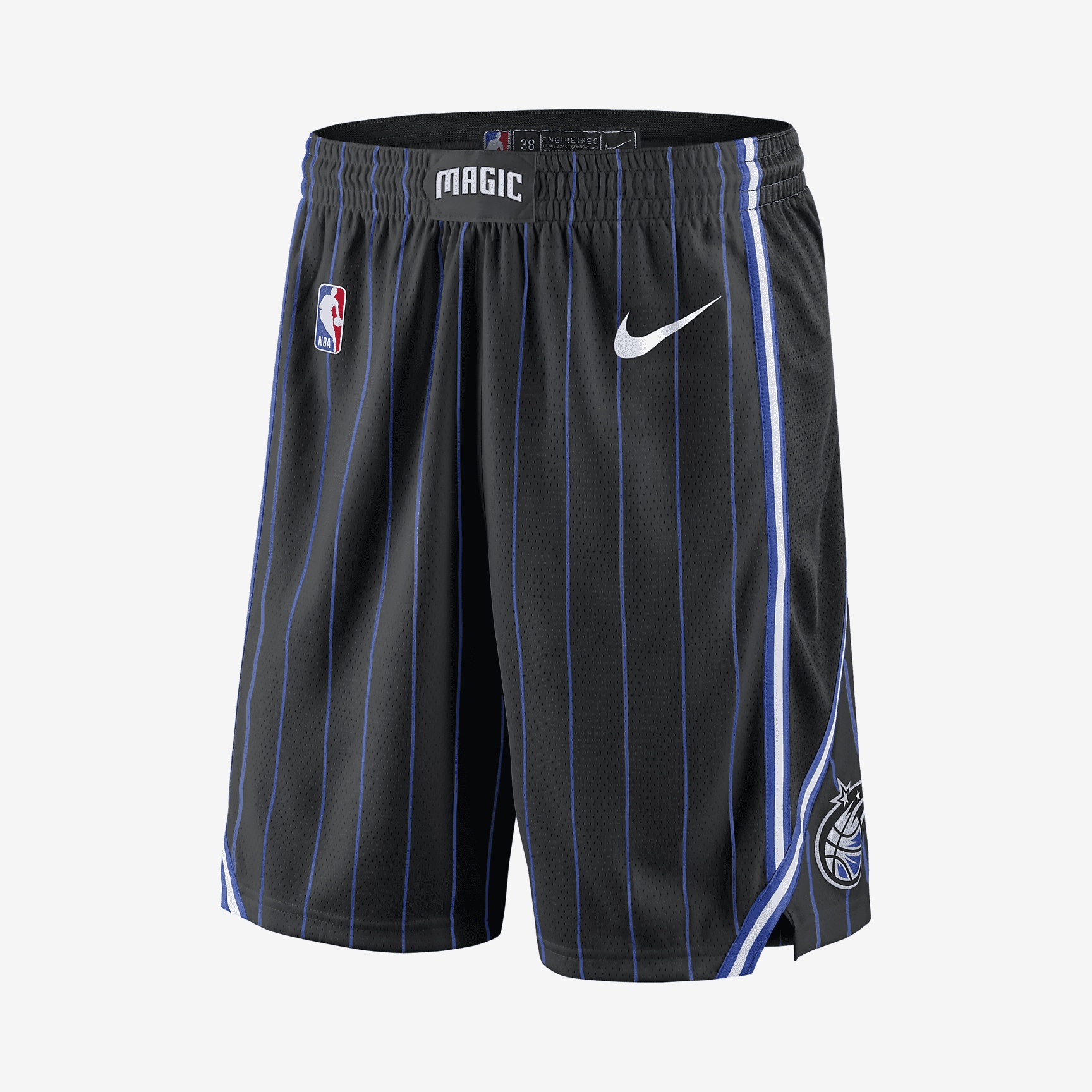 Inspired by the authentic NBA shorts, the Orlando Magic Icon Edition Nike NBA Swingman Shorts feature sweat-wicking fabric and design details that match your team's on-court look. Side pockets stash essential items for easy storage. This product is made with 100% recycled polyester fibers. Benefits - Dri-FIT technology helps keep you dry and comfortable. - Mesh fabric is lightweight, breathable and durable. - Hem vents let you move freely. Product Details - Hand pockets - NBA and team logos - 100% polyester - Machine wash - Imported - Shown: Black/Game Royal/White - Style: AV4976-010 SIZE & FIT Standard fit: easy and traditional