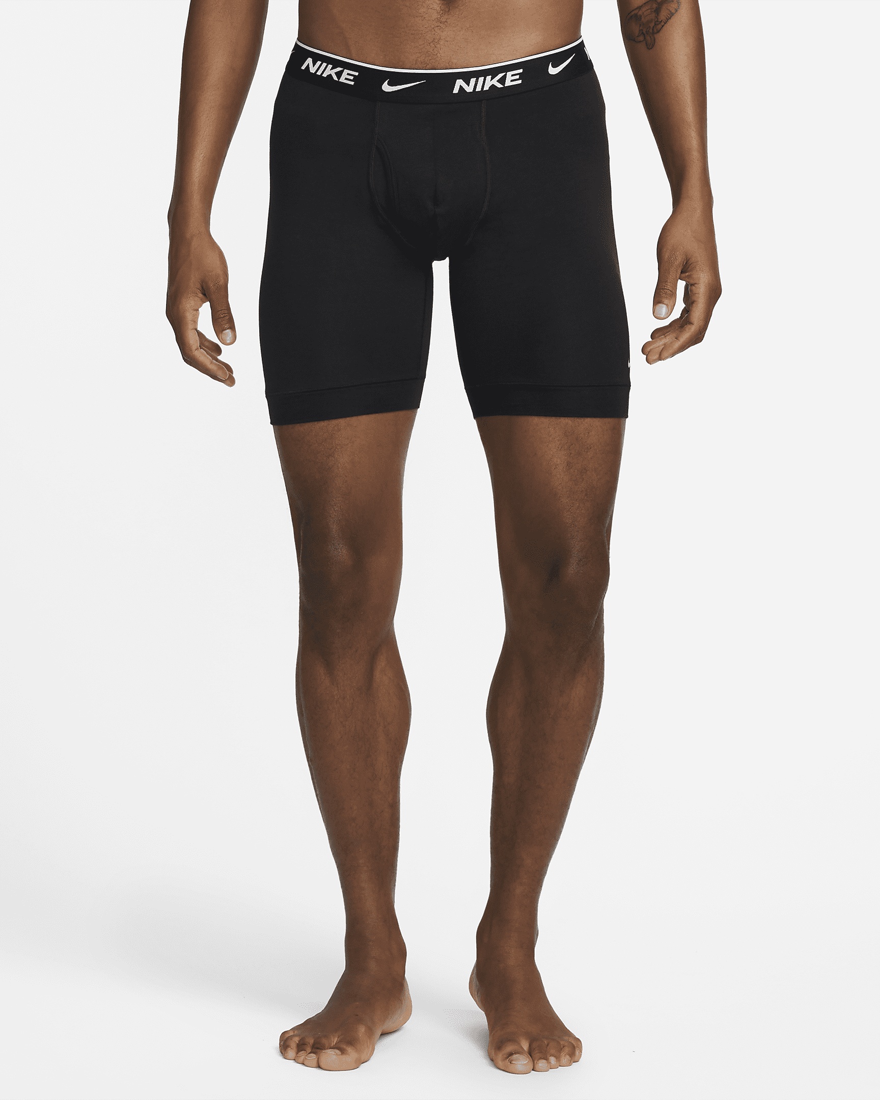 Your first layer should be your best layer. Crush your workout with the Nike boxer briefs, made from breathable stretch cotton. With sweat-wicking technology to keep you dry and comfortable and wide hems that prevent bunching, these performance underwear are made to fit every body. Benefits - Nike Dri-FIT technology moves sweat away from your skin for quicker evaporation, helping you stay dry and comfortable. - Stretch material enhances your freedom of movement. - Wide hems help keep underwear in place. - Functional fly offers added convenience. Product Details - 95% cotton/5% spandex - 8 inch inseam - Machine wash - Imported - Shown: Black - Style: KE1168-001 SIZE & FIT Model is wearing size M and is 6′2″188cm