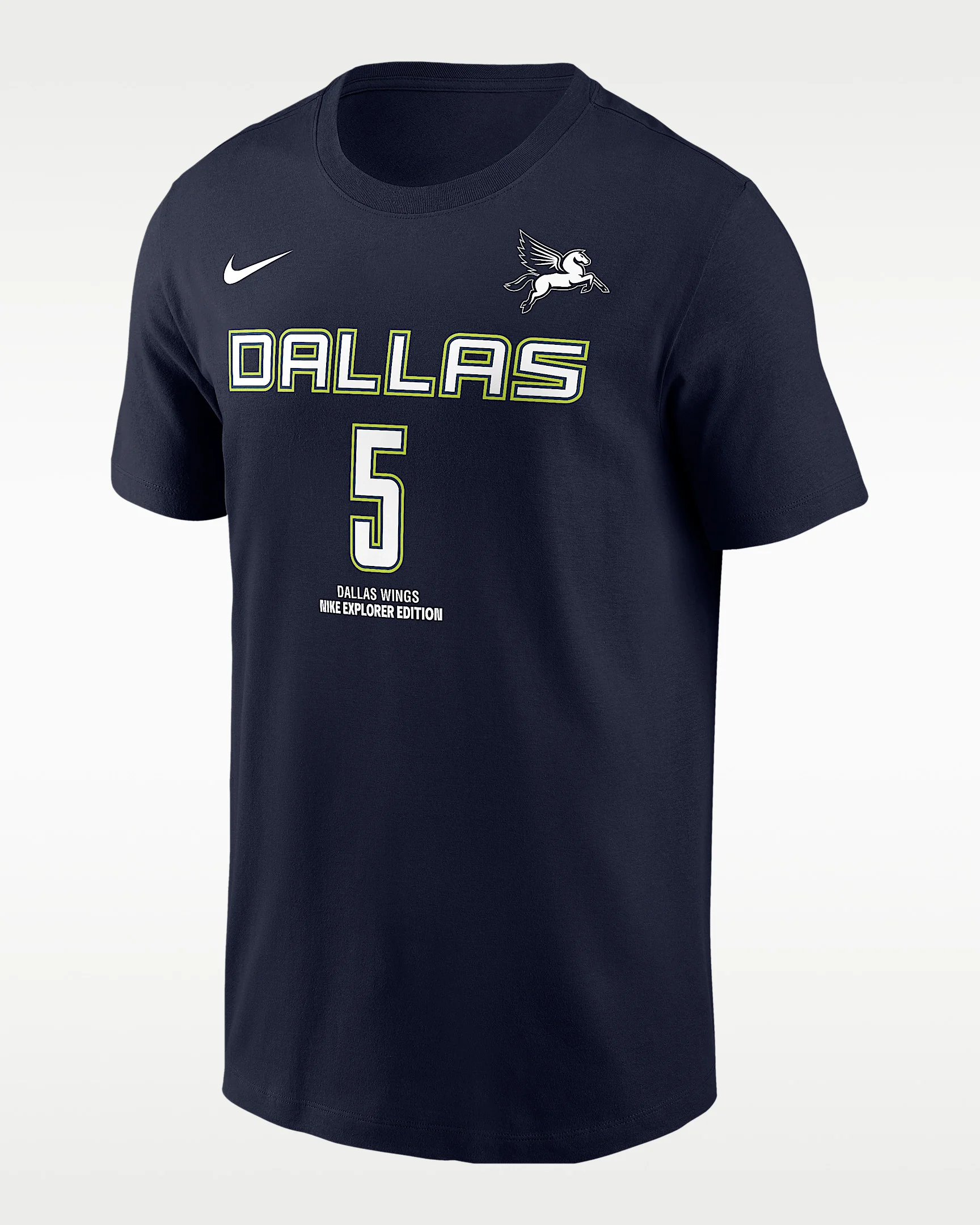Show some love for the rookie in this Paige Bueckers tee. Inspired by the Dallas Wings' Explorer Edition jersey, this cotton tee has the classic Nike fit and feel you know and love. Product Details - 100% cotton - Machine wash - Imported - Shown: Navy - Style: M11332DWPB-NVY