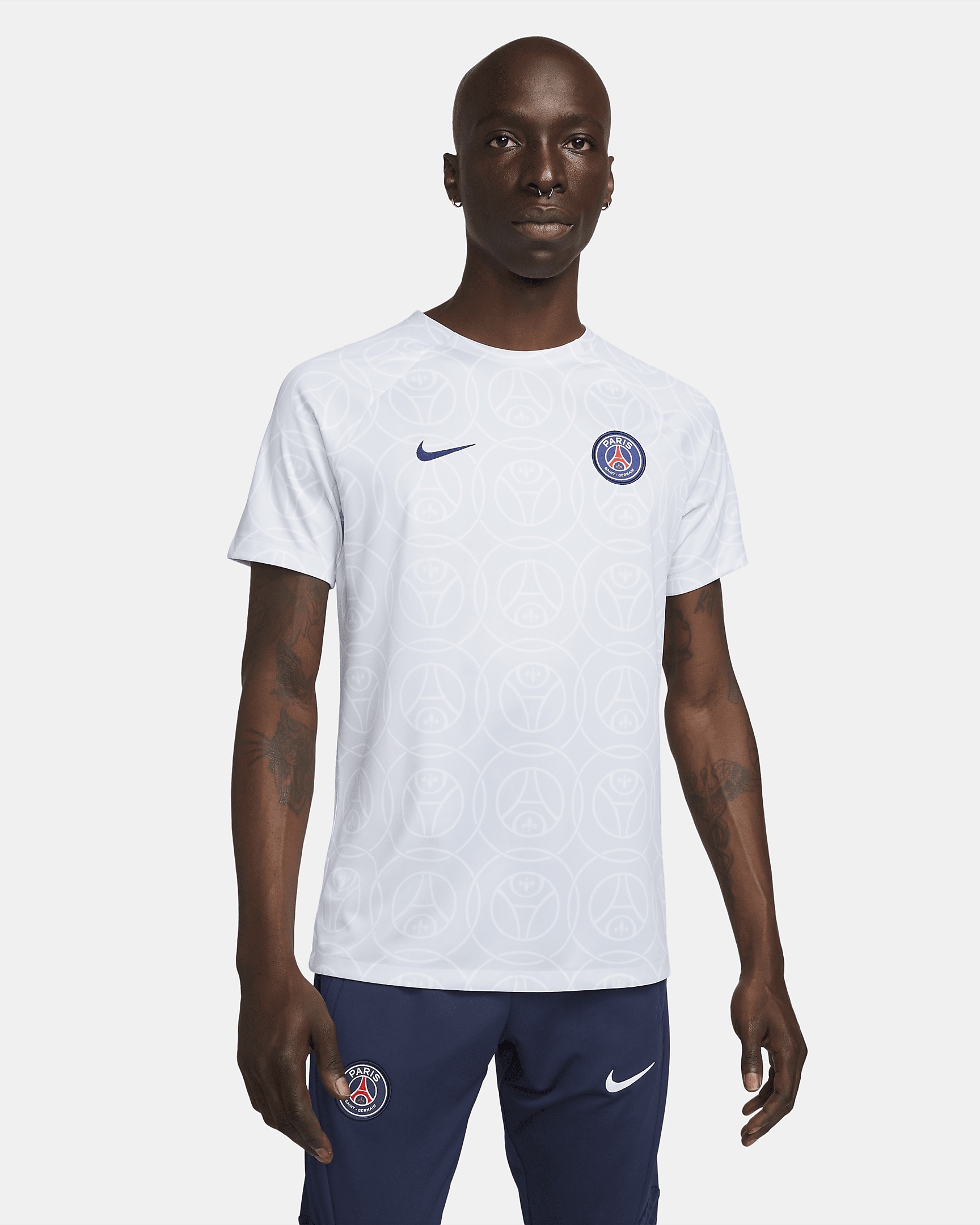 The Paris Saint-Germain Top gives you the same look as your favorite players. Sweat-wicking technology is lightweight and breathable to help keep you dry while you're warming up for the match. This product is made with 100% recycled polyester fibers. Benefits - Nike Dri-FIT technology moves sweat away from your skin for quicker evaporation, helping you stay dry and comfortable. - Signature crest and colors let you support your team wherever you go. Product Details - Standard fit for a relaxed, easy feel - 100% polyester - Machine wash - Imported - Shown: Aura/Aura/Aura/Midnight Navy - Style: DJ8563-472 SIZE & FIT Model is wearing size M and is 6′1″186cm Standard fit: easy and traditional