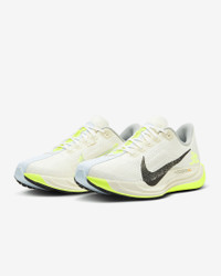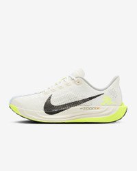 Take responsive cushioning to the next level with the Pegasus Plus. It energizes your ride with full-length, superlight ZoomX foam to give you a high level of energy return for everyday runs. And a stretchy Flyknit upper conforms to your foot for a seamless fit. Benefits - Flyknit on upper has perforations to help reduce the weight of the shoe and make it more breathable. - ZoomX foam midsole offers springy cushioning. - High-abrasion rubber on outsole provides traction. - Midfoot band helps keep you contained. Product Details - Weight: Approx. 245 g/8.6 oz (Men's US 10) - Heel-to-toe drop: 10 mm - Reflective details - Not intended for use as Personal Protective Equipment (PPE) - Shown: Sail/Pale Ivory/Volt/Black - Style: HQ3451-101
