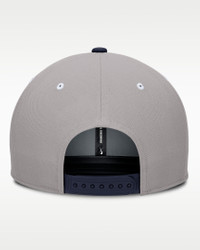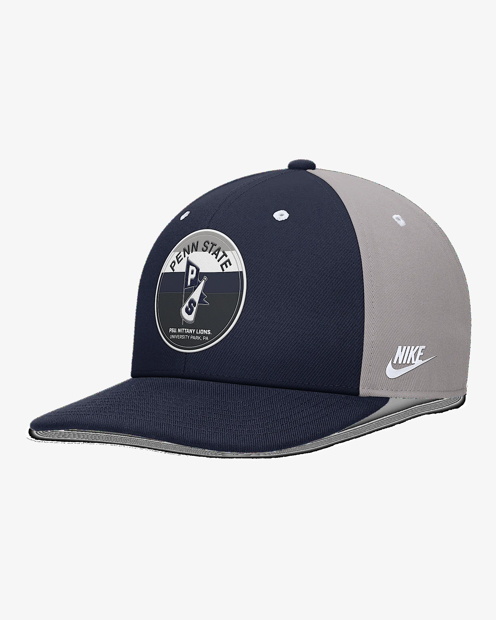 With a high crown and square bill, this Penn State Athletic Prep Pro Hat provides a modern look. Its sweat-wicking technology and snapback closure help you comfortably support your favorite team. Benefits - Nike Dri-FIT technology moves sweat away from your skin for quicker evaporation, helping you stay dry and comfortable. - Snapback closure provides a customizable fit. Product Details - 6-panel design - Embroidered eyelets - 100% recycled polyester - Hand wash - Imported - Shown: Grey/Navy - Style: NC12196TPSV-7U6