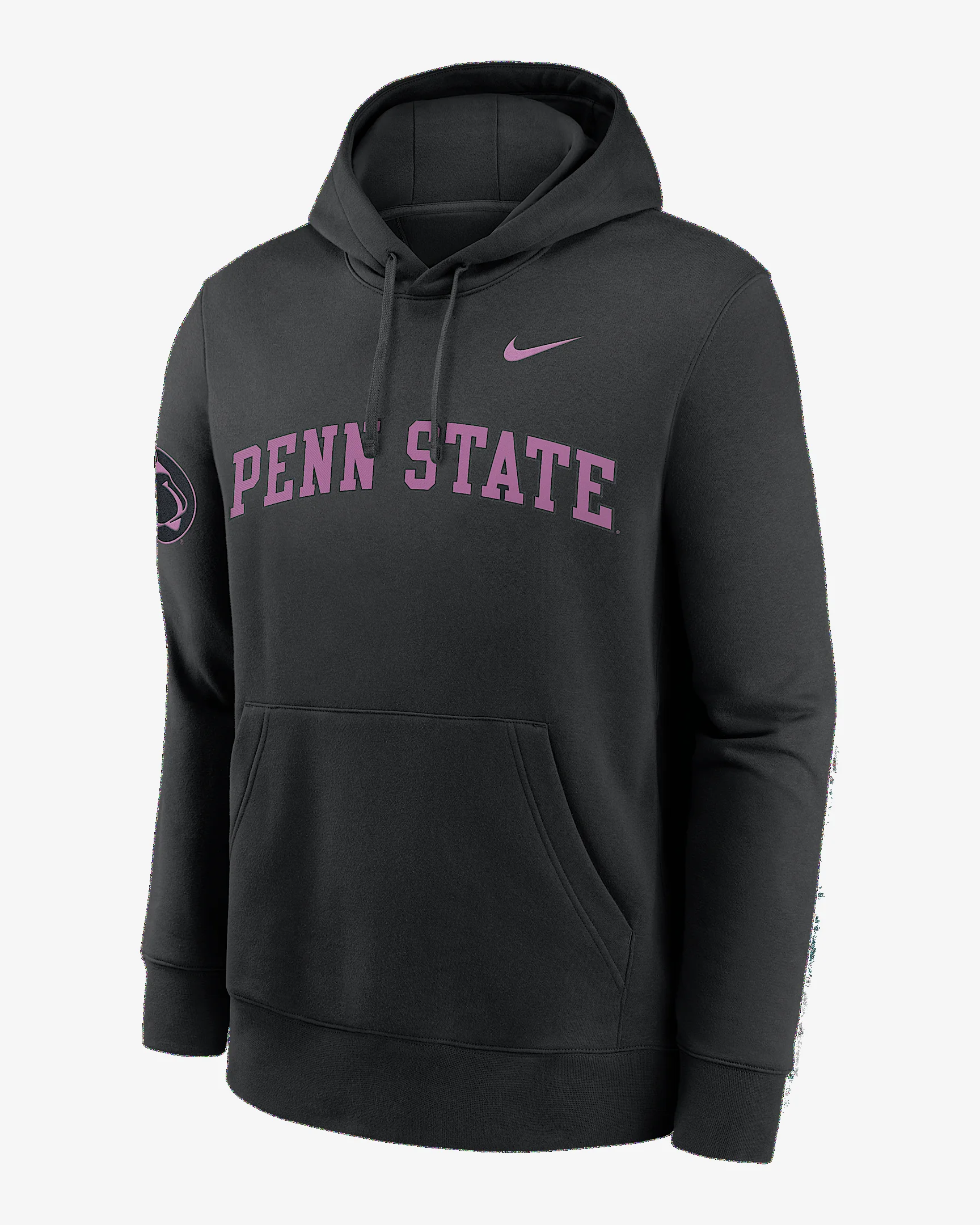 Featuring bold team graphics, this Sideline Club Hoodie is made with cozy fleece fabric and a brushed French terry lining to help you comfortably support Penn State in chilly temperatures. Product Details - Front pocket - Hood with drawstring - 82% cotton/18% polyester - Machine wash - Imported - Shown: Black - Style: MKDK00APSN-TVV