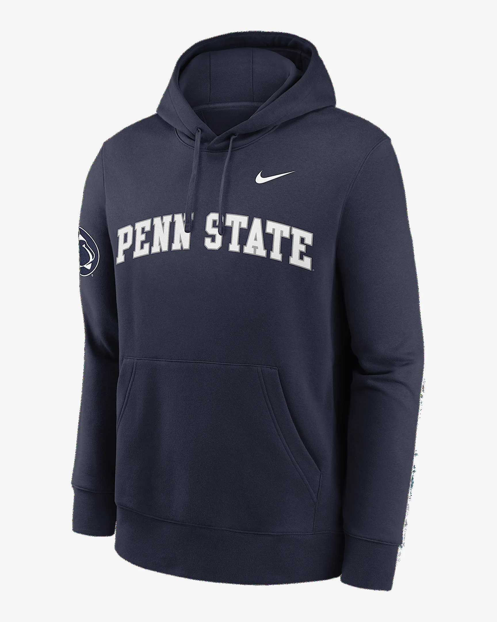 Featuring bold team graphics, this Sideline Club Hoodie is made with cozy fleece fabric and a brushed French terry lining to help you comfortably support Penn State in chilly temperatures. Product Details - Front pocket - Hood with drawstring - 82% cotton/18% polyester - Machine wash - Imported - Shown: Navy - Style: MKDK41SPSN-TVV